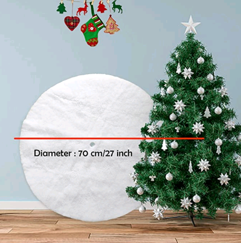 White Xmas Tree Skirt Fiber Synthetic Cotton ,27/35 Inches ,with Sequins,Tree Base Cover Christmas Decoration Ornaments Xmas Party Décor (27-inch)