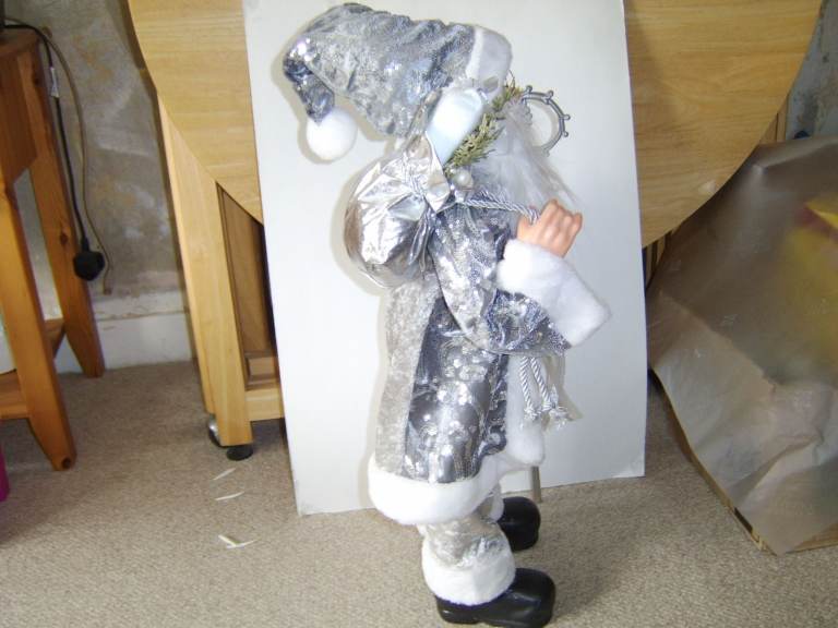 New free-standing Xmas Santa with a bag of presents and a stick is available for sale.
