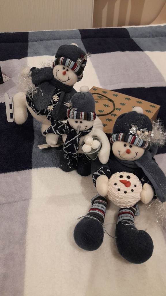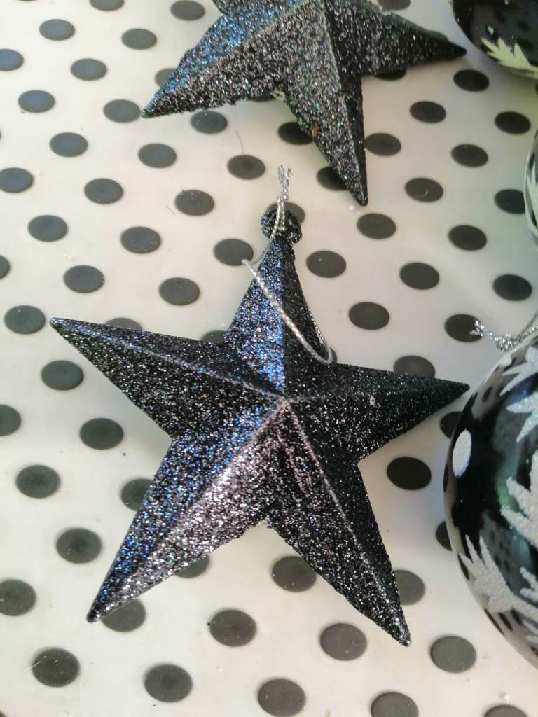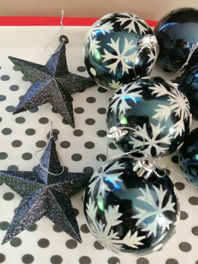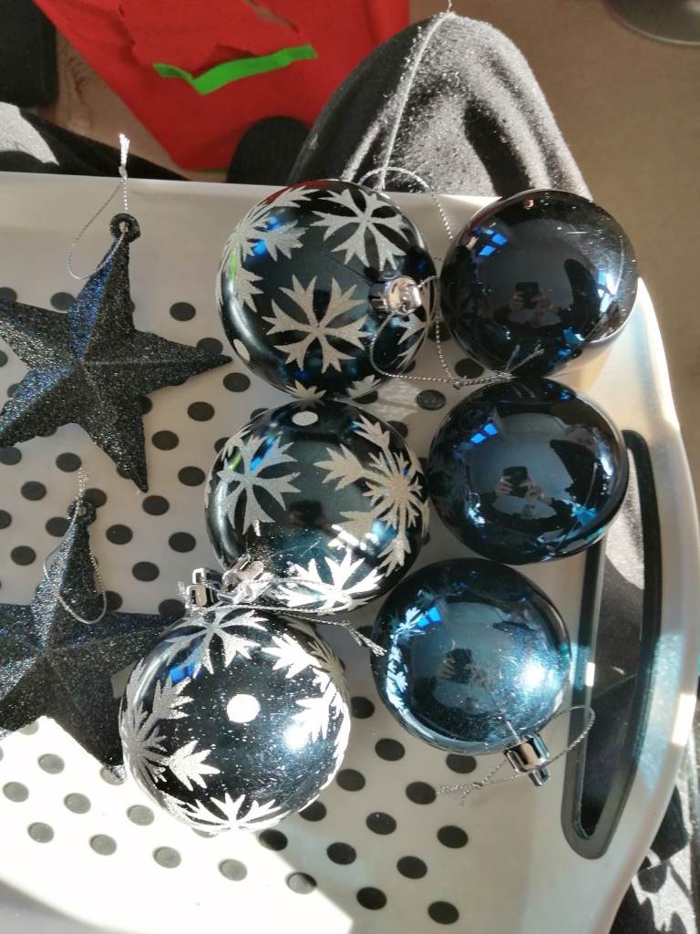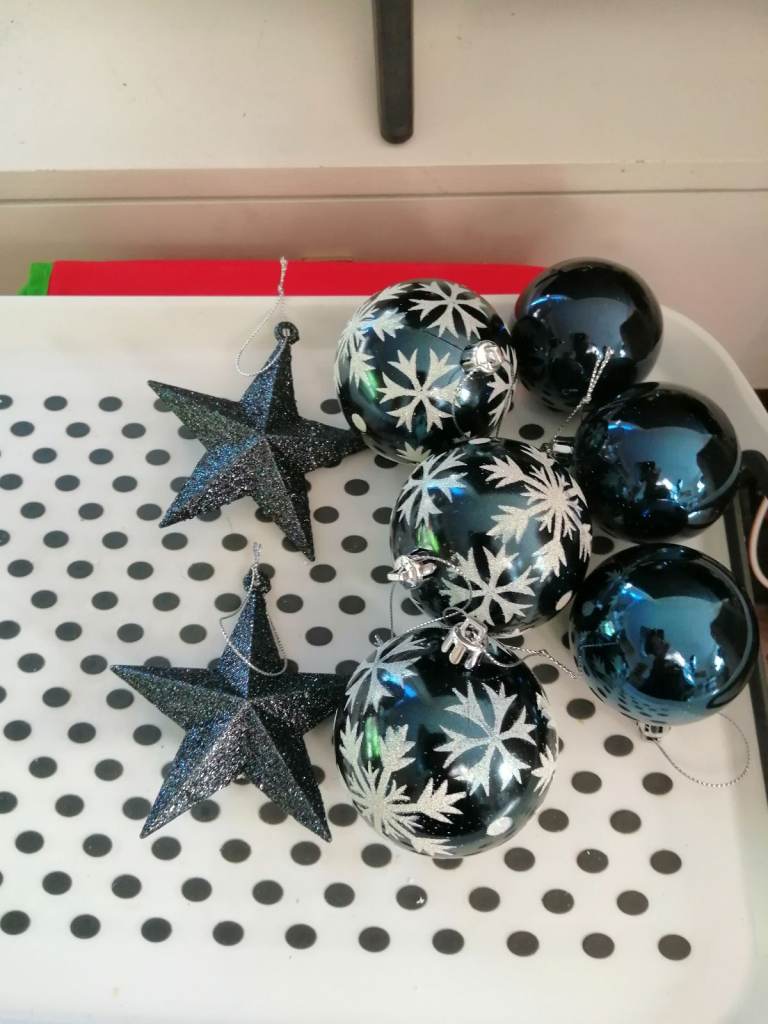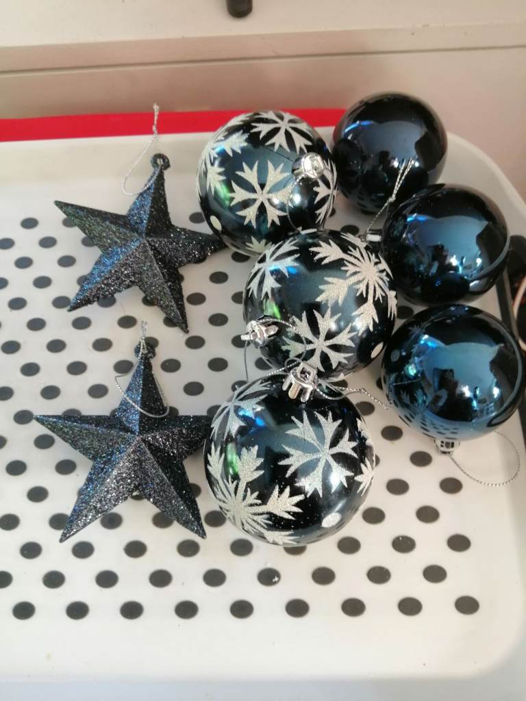 Xmas tree decorations including 3 blue with silver snow flake pattern baubles 7cm, 3 plain blue 5cm and 2 blue stars 10cm