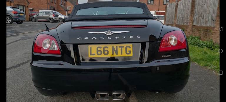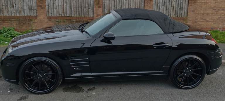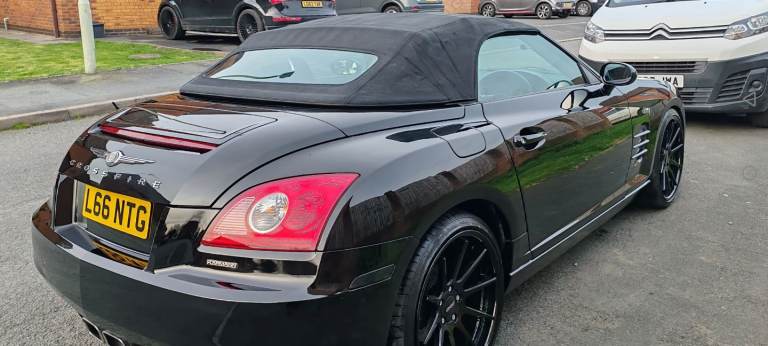 Hi here is my very clean crossfire all paperwork 2 keys full new paint job brand-new wheels and tyres just had service everything works alpine Bluetooth hands free 19" alloys serious buyers only full m.o.t taxed private plate not included .Rare in black 6 speed soft top roof is very clean.