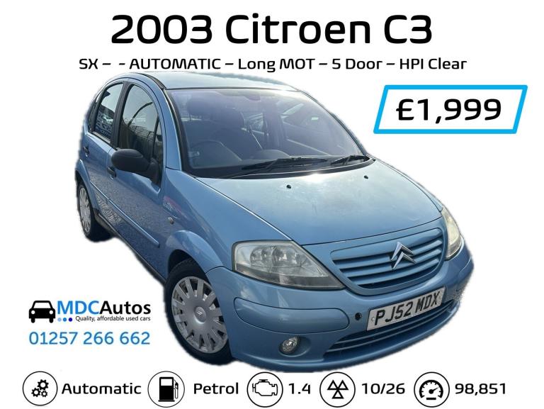 Posting for 12+ years2003 Citroen C3 1.4i SX 5dr Auto, LONG MOT, HPI CLEAR, AUTOMATIC HATCHBACK Petrol Automatic