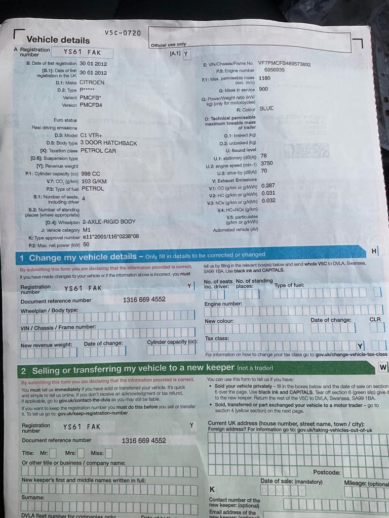 Posting for 1+ years2012 Citroen C1 1.0i VTR+ 3dr [AC] HATCHBACK Petrol Manual
