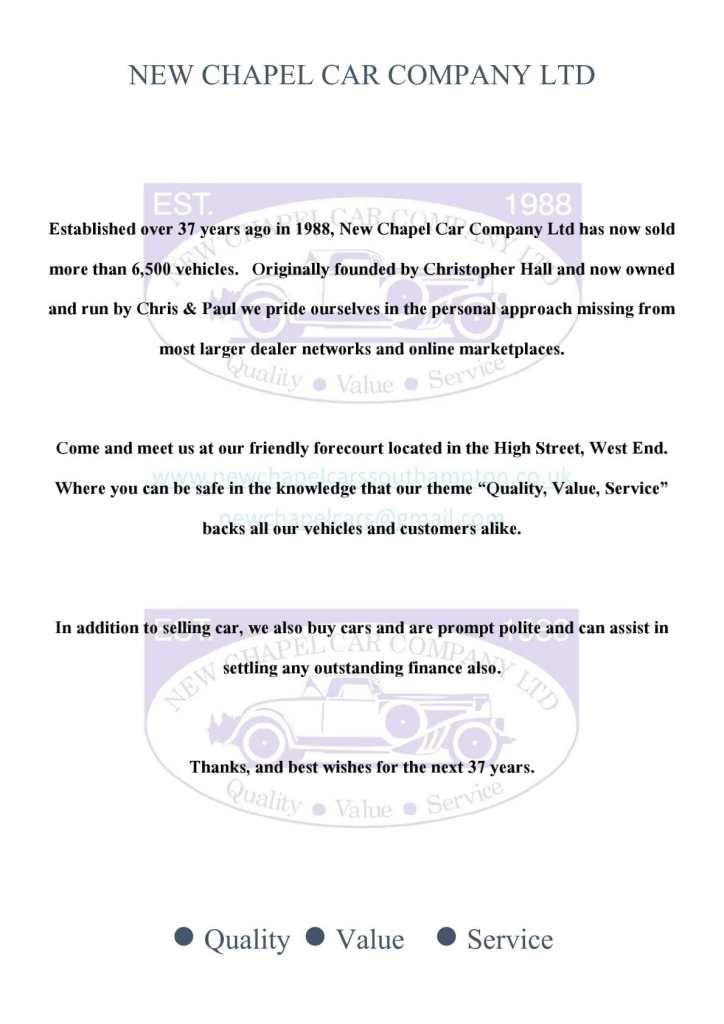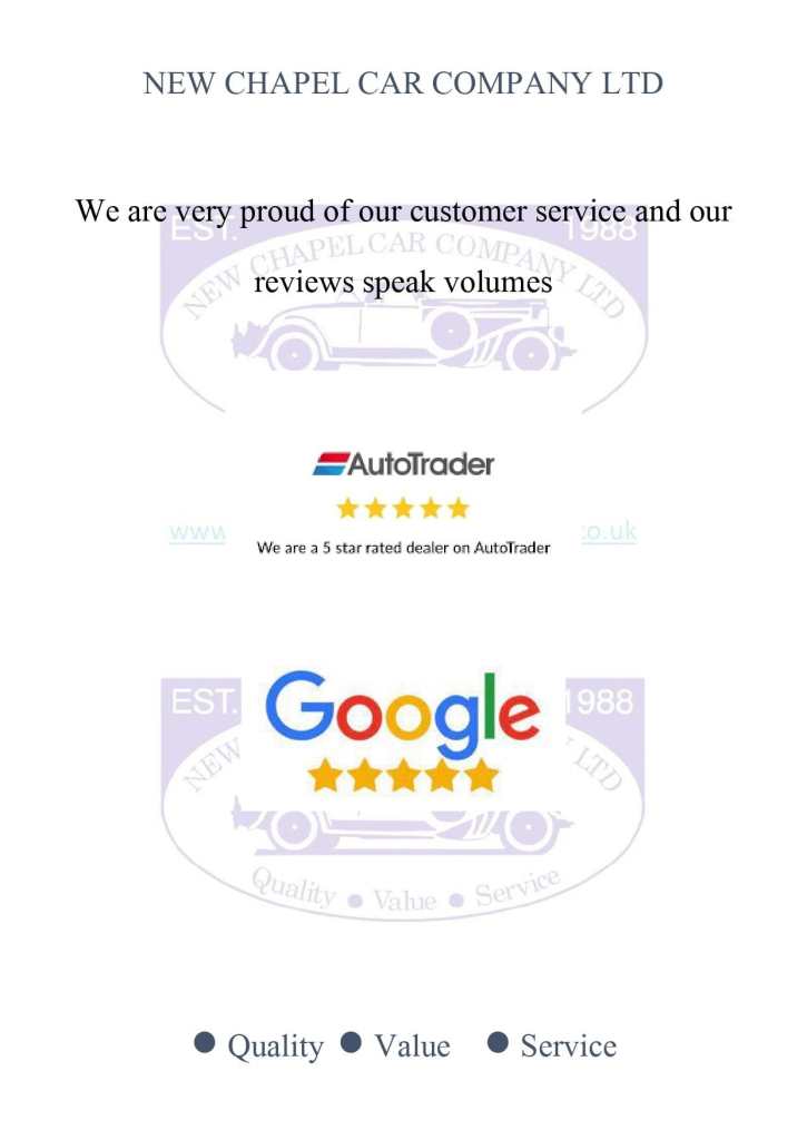 **JUST ARRIVED** Full photographs & description coming soon! New Chapel Car Company Est 1988. Recipients of multiple Auto Trader Highly Rated awards for Customer Service and 5 Star rated Customer reviews. Check out our reviews on both Auto Trader and Google and see what sets us apart from our competition. We offer competitive finance packages that can be tailored to meet your budget, and part exchanges are welcome. Please call today on [Phone number removed] to arrange a viewing before you miss out! NO admin fees or uncomfortable upselling of 'value added products'