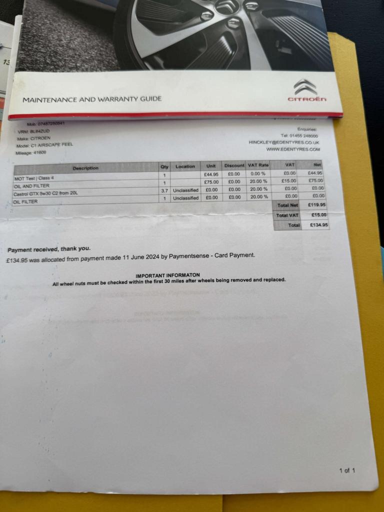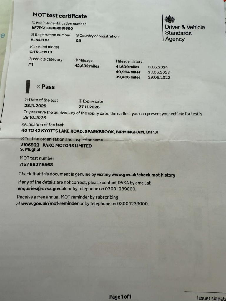 Introducing the Citroen C1 1.0 Airscape Feel Edition 5dr – a stylish, compact and effortlessly modern city car finished in crisp White.With just 42,662 miles and three previous owners, this well-kept example is ideal for anyone seeking an economical, practical, and fun vehicle for everyday driving.The Citroen C1 stands out with its contemporary design and compact dimensions, making it perfectly suited for navigating busy streets and tight parking spaces. The Airscape Feel Edition brings an added touch of enjoyment thanks to its retractable fabric roof, giving you the freedom to enjoy open-air driving whenever the weather calls for it.This is a fantastic opportunity to own a lively and characterful city car. Book your appointment today and take the Citroen C1 for a test drive.SpecificationVehicle Type: CarColour: WhiteFuel: PetrolTransmission: ManualDoors: 5CO2 Emissions: 95 g/kmNOx Emissions: 0.008 g/kmKeys: 2OwnershipLog Book: PresentPrevious Owners: 3Date of Registration: 17/01/2015EquipmentAir ConditioningAlloy WheelsTyre Inflation KitService HistoryInvoice/Receipt Record Present5 Services CompletedLast Service: 11/06/2024Last Service Mileage: 41,609DVSA Mileage Records:18k (13/09/2017)26k (06/09/2018)32k (03/09/2019)36k (08/09/2020)36k (08/07/2021)39k (29/06/2022)40k (23/06/2023)41k (11/06/2024)42k (28/11/2025)Additional Notes: None recordedMOT Expiry: 27/11/2026ALL Viewings Strictly by Appointment OnlyTelephone and Email Lines Open 8am to 8pm Monday to Sunday EVERY Day of The Year All Vehicles Are Supplied with a Quality Warranty (extendable to 2 years) 1YR AA Breakdown Cover Over 6 Months MOT and All Vehicles Normally Serviced Before Collection or Delivery No Admin Fees No Hidden Charges We Accept Most Credit and Debit Cards, We DO NOT Accept American Express PayLess4aCar Achieves Awards EVERY Year Including Retailer Award Finalist 2021 2022 Highly Rated Award 2021 2022 then 2023 with AutoTrader plus Top Rated Award 2021 2022 and are all set to win ALL Awards Again In 2024…. In fact already have! Be Sure to Read Our Verified Independent Reviews and You Will Understand WhyFinance Options Available for Most Vehicles We Can Deliver ALL Vehicles Anywhere in The World at Trade Cost We Can Collect You from West Horndon – Billericay - Basildon Or Laindon Bus or Train Stations or Stansted Or Southend Airports.
