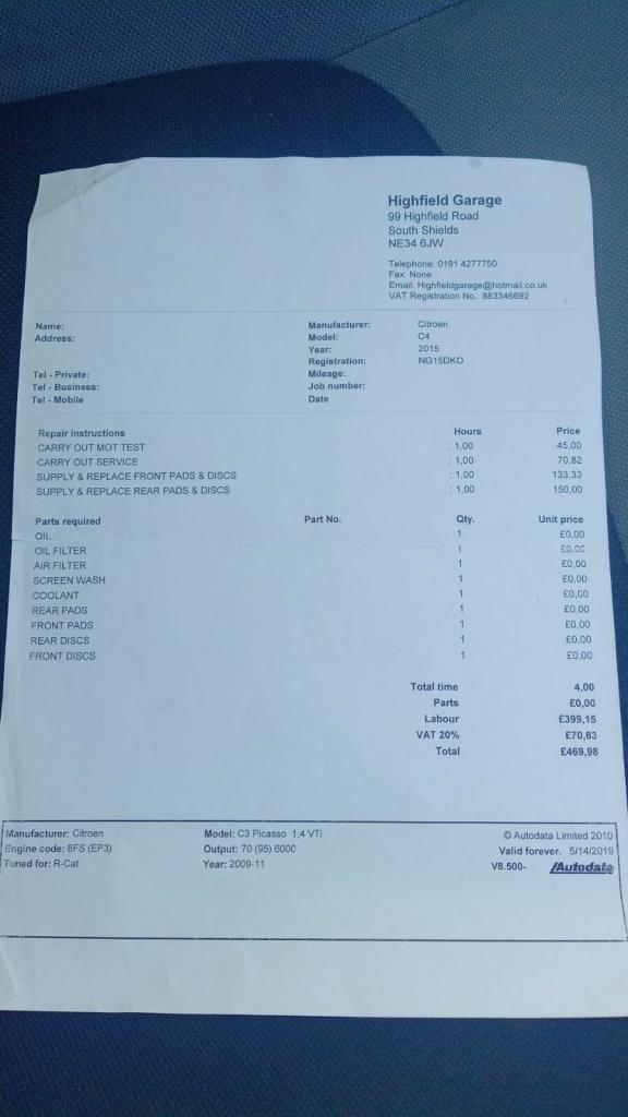 These include, Parts, Labour and Brake Down cover in any VAT registered garage.