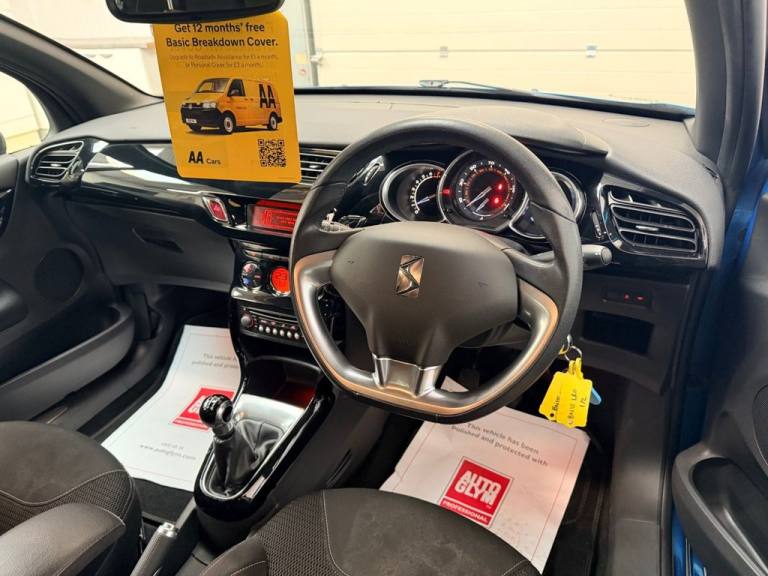 Citroën DS3 1.2 PureTech DStyle Plus Hatchback 3dr Petrol Manual Euro 6 (s/s) (110 PS) (2015) Registration: BN15 LRO £4,245 51,500 miles Manual Petrol 3 Door Hatchback Euro 6 / ULEZ Available Now at DCG Limited - AA Approved Dealer in Reading A smart, well maintained Citroën DS3 DStyle Plus, finished in a vibrant Blue and powered by the efficient 1.2 PureTech 110 PS engine. This example stands out with an exceptional 11?service history, showing consistent care throughout its life. With ULEZ compliance, low running costs, and stylish design, its an ideal first car, commuter, or city friendly hatchback. Key Features & Highlights 1.2 PureTech Petrol (110 PS) — Smooth, economical, and reliable Euro 6 / ULEZ compliant DStyle Plus Trim — Sporty styling and premium touches Blue Exterior — Eye catching and modern 3 Door Hatchback — Compact and stylish Touchscreen Infotainment Bluetooth, USB, DAB Radio Air Conditioning Cruise Control & Speed Limiter LED Daytime Running Lights ISOFIX Mounts Split Folding Rear Seats Service History 11 services in total Outstanding maintenance record, rare for its age Drives smoothly and has been clearly cared for Why Buy from DCG Limited? AA Approved Dealer HPI Clear 6 Month Warranty Included 12 Months AA Breakdown Cover Professionally Valeted & Fully Inspected Part Exchange Welcome Flexible Finance Options Available Book an Appointment DCG Limited Unit 5b Springalls Farm House Yard Trowes Lane, Swallowfield Reading, Berkshire RG7?1RN Call Today: [Phone number removed] [Phone number removed] 01183 671388 Email: [Email address removed. Click Email button to contact us.] Browse More Stock: [Website URL removed] Socket - Front, 17in Alloy Wheels - Aphrodite Black, 3D LED Rear Lights, ABS - Anti-Lock Braking System, Air Conditioning - Automatic-Digital, Airbags - Driver, Armrest - Front Centre, Auto-Dimming Electrochrome Rear View Mirror, Automatic Activation of Hazard Warning Lights, Automatic Door and Boot Locking when in Motion, Auxiliary Socket, Black Panel Night-time Instrument Lighting, Bottle Holder, Carpet Mats - Front and Rear, Chrome Front Grille Surround, City Signature Pack, Connecting Box - Bluetooth System, Contrasting Body-Roof Colour, Courtesy Reading Lights - Front, Cruise Control with Speed Limiter, Curtain Airbags, Dark Tinted Rear Windows, Door Handles - Chrome, Door Mirrors - Electrically Heated-Folding, Door Sill Protector - Chrome, Drivers and Passengers Sunvisor with Courtesy Mirror, EBFD - Electronic Brakeforce Distribution, Electric Windows - Front with One-touch Operation on Drivers Side, Electronic Stability Control, Emergency Brake Assistance, Exterior Temperature Display, Front Fog Lights, Front Fog Lights - Chrome Surround, Front Lateral Airbags, Front Passenger Airbag, GEI - Gear Efficiency Indicator, Gloss Black Centre Console, Gloss Black Kit - Gloss Black Dashboard with Black Gear Knob, Headlights - Automatic, Headlights - Halogen, Height and Reach Adjustable Steering Wheel, Height-Adjustable Driver Seat, Interior Mood Lighting, ISOFIX - Child Seat Anchorage Points - Outer Rear, Lashing Eyes in the Boot, LED Daytime Running Lights - DRLs, Luggage Compartment - Lighting, Matching Body-Roof Colour, Multi-Function On-Board Trip Computer, Plus Pack, Pollen Filter, Puncture Repair Kit, Radio - RDS with CD and MP3 Player, Rain Sensing Automatic Front Windscreen Wipers, Rear Head Restraints, Remote Central Locking with Deadlocks, Roof Colour Painted Door Mirrors with Chrome Base, Scented Air Freshener, Seat Belt Unfastened Warning - Driver, Seats - 1-3 - 2-3 Split Folding Rear, Side Rubbing Strips - Chrome, Speakers x6, Steering Wheel - Leather with Chrome Effect Inserts, Steering Wheel Mounted Controls, Storage - Front Door Pockets, Storage - Front Seat Back Pockets, Storage - Rear Door Pockets, Suspension - Sports, Tyre Pressure Monitor, Upper Dashboard - Soft-Touch Effect, USB Socket, Variable Power Assisted Steering