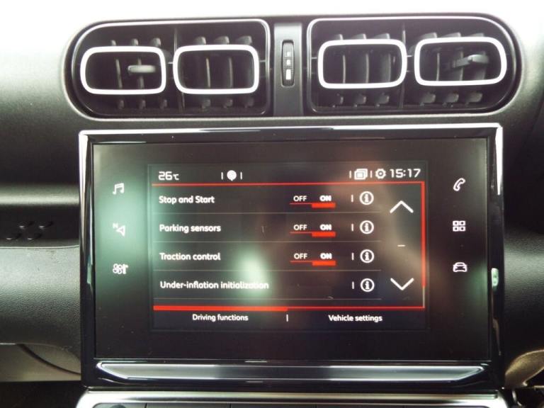 .12V Socket - Front, 12V Socket - Rear, 17in Alloy Wheels - 4 Ever - Diamond Cut, 7in Colour Touchscreen, ABS with Electronic Brakeforce Distribution and Emergency Braking Assistance, Active Safety Brake, Alarm, Armrest - Rear with Ski Flap, Auto-Dimming Electrochrome Rear View Mirror, Automatic Air Conditioning, Automatic Windscreen Wipers, Bluetooth Handsfree and Media Streaming with USB Socket and Jack, Body Colour Painted Door Handles with Chrome Inserts, Boot Light, Citroen Connect Box with Emergency and Assistance System, Citroen Connect DAB Radio with 6 Speakers, Citroen Connect Nav on 7in Touchscreen with Citroen Connect Box with Emergency and Assistance System, Coffee Break Alert, Cruise Control with Speed Limiter, Dark Tinted Rear Windows, Door Mirrors - Electrically Adjustable-Heated-Folding, Driver - Front Passenger - Front Lateral and Curtain Airbags, Drivers - Passengers and Rear Seats Unfastened Seat Belt Warning, Drivers and Passengers Sunvisor with Courtesy Mirror, Electronic Stability Control - ESC, Five Three-Point Inertia Reel Seat Belts, Floor Console Central Storage with 2 Cup-Holders, Forward Collision Alert, Front Courtesy and Reading Lights, Front Door Storage Large Enough for a 1.5L Bottle, Front Electric Windows - One Touch with Anti-Pinch, Front Fog Lights with Cornering Function, Front Seat Belt Pretensioners, Front and Rear Aluminium Effect Bumper Protectors, Gloss Black Door Mirrors, Grey Soft Touch Dashboard Facia, Halogen Headlights with LED Daytime Running Lights, Headlights - Automatic, Height Adjustable Drivers Seat, Height and Reach Adjustable Steering Wheel, Hill Start Assist, Immobiliser, Ink Black Roof Bars and Mirror Caps, Keyless Entry and Start, Lane Departure Warning System, Leather Gear Knob, Manual Child Locks, Mirror Screen with Android Auto - Mirror Link and Apple CarPlay, Multi-Function On-Board Trip Computer, Outer Rear Seats with ISOFIX Mounting Points Including Top Tether, Power Assisted Steering, Pull Out Boot Floor, Rear Door Storage Large Enough for a 0.5L Bottle, Rear Electric Windows - One Touch with Anti-Pinch, Rear Parking Sensors, Remote Central Locking with Deadlocks, Rev Counter, Roof - Body Coloured, Seats - 60-40 Split Rear, Sliding Rear Bench, Space Saver Spare Wheel, Speed Limit Recognition and Recommendation, Steering Wheel - Leather with Satin Chrome Inserts, Steering Wheel Mounted Controls, Tilt-Adjustable Rear Seats - Two Positions, Top Rear Vision Reversing Camera, Tyre Pressure Monitor