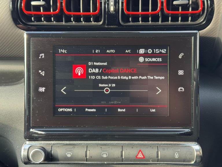 This stunning Citroen C3 Aircross 1.6 BlueHDi Flair SUV 5dr Diesel Manual Euro 6 (s/s) (120 ps) is finished in Metallic Soft Sand with Ink Black Roof and Grey and Read Cloth Seats. This car benefits from Sat Nav, DAB Radio, Bluetooth, Apple CarPlay and Android Auto, USB Input, AM/FM Radio, Touch Screen Infotainment, Multifunctional Steering Wheel, Cruise Control, Climate Control, Rear Parking Sensors, Orange Styling Pack, Keyless Entry and Go, Automatic Lights and Wipers, LED Daytime Running Lights, Foglights, Electric Windows, Privacy Glass, Electrically Folding Door Mirrors, Alloy Wheels, Spare Wheel, Sliding and Reclining Rear Seats, Isofix Points, Start Stop Technology, Lane Keep Assist and Forward Collision Assist. Here at LS Autos, an independent used car dealer based in Farnham. With a combined experience of over 25 years, every one of our 40 + cars in stock undergoes a Vehicle Health Check Inspection, Free 6 month Warranty, a HPI check and a minimum of 6 months MOT. We also offer competitive finance packages. Extended Warranties are available. Please contact one of our friendly sales team who will be happy to answer any questions and assist with your new car buying journey. Viewings on an appointment basis. Please visit our website [Website URL removed] to see our full stock.