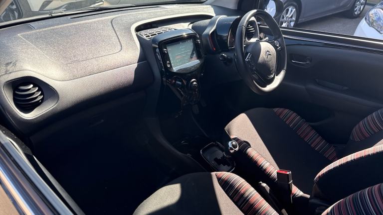 The 2019 Citroën C1 1.0 VTi 72 Flair 5dr ETG Hatchback is a compact and stylish city car that stands out for its efficiency, ease of use and urban practicality. It’s an excellent choice for drivers looking for a reliable, low-cost and easy-to-drive vehicle for everyday use.Powered by a 1.0-litre petrol engine producing 72PS, the C1 delivers smooth and economical performance, making it ideal for city driving and short journeys. Its lightweight design and efficient engine contribute to impressive fuel economy and low running costs, while still providing enough power for everyday needs.The ETG automatic gearbox adds convenience, offering easy and stress-free driving, particularly in stop-start traffic and urban environments. It makes the C1 especially appealing for new drivers or those wanting a simple driving experience.Inside, the Flair trim provides a bright, modern and well-equipped cabin. The interior feels cheerful and user-friendly, with features such as a touchscreen infotainment system, smartphone connectivity and stylish design touches that enhance the driving experience.Practicality is strong for a car of this size. The C1 offers comfortable seating for front passengers, useful rear space for shorter trips, and a practical boot for shopping or everyday essentials. Its compact dimensions make it incredibly easy to manoeuvre and park, especially in tight city streets.On the road, the C1 delivers a light, nimble and enjoyable driving experience. The steering is easy to use, and its small size makes it highly agile in traffic. The suspension handles everyday bumps well, ensuring a comfortable and composed ride for urban journeys.Overall, the 2019 Citroën C1 1.0 VTi 72 Flair 5dr ETG Hatchback is an efficient, user-friendly and stylish city car that excels in low running costs, ease of driving and everyday practicality — making it a fantastic choice for urban drivers and first-time car owners..Air Conditioning, Metallic Paint, Alloy Wheels, DAB Radio, Bluetooth, Low Mileage, USB& Rear Camera, Electric front windows, Electronic stability control, Variable power steering, 7'' touch drive interface with tripleplay (apple carplay, android auto and mirrorlink), Electric adjustable heated door mirrors, Gloss black centre console, DAB digital radio, MP3 audio system with 4 speakers, bluetooth handsfree, USB socket and steering mounted controls, Chrome chevrons with gloss black surround, Elliptical lights, Pollen filter, Interior door and boot locking, Front courtesy reading lights, Unfastened seat belt warning on all seats, ISOFIX child seat anchorage points attached on outer rear seats, High-frequency remote control central locking with deadlocks, Driver and passenger sunvisor with courtesy mirror, Black wheel centre caps, Space saver spare wheel