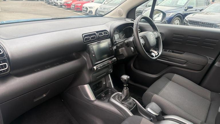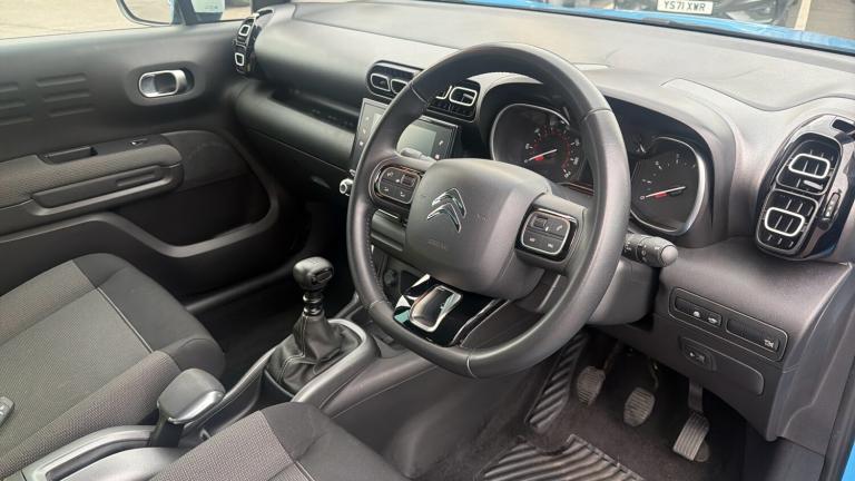 Bold and Modern is the best way to describe the Citroen C3 Aircross. The distinctive design offers high levels of style on both the exterior and interior. Finished in the stunning Breathing Blue Metallic Paint with 17 inch '4 Ever' Alloy Wheels and the Exterior White Package, the Citroen C3 Aircross is a modern and contemporary take on the Compact SUV design. Featuring the brilliant 130 Puretech petrol engine, not only do you benefit from incredible performance but low running costs too. The car is fitted with some excellent standard equipment from the factory, including Rear Parking Sensors, Automatic Lights and Wipers along with Electrically Folding Door Mirrors. The boot boasts 410 litres of cargo space which can be expanded to a maximum of 1289 litres for larger loads. Isofix anchoring points are located on the rear of the C3 Aircross and provide a safe and secure method of fastening children into the vehicle. The 'Citroen Connected Nav' sits proudly on the dash and provides access to the TomTom based Navigation, Media Connections and Extensive Safety Equipment list. This system can be controlled for media presets through the wheel mounted controls, with Cruise Control and Speed Limiter accessed through the additional stalk placed on the steering column.