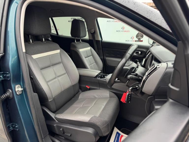 FINANCE & PCP AVAILABLE, COMPLEMENTARY WARRANTY INCLUDED, GOOD CONDITION, WE TAKE PART EXCHANGE! Citroen C5 Aircross 1.5 BlueHDi Flair EAT8 Euro 6 (s/s) 5dr. HPI Clear, 9 Months, 2 Owners, 2 Keys, EURO6 ULEZ Compliant, Insurance Group 17, Park City Camera Pack, Cruise Control, Speed Limiting Function, Reverse Camera, Park Assist Function - With Auto Parallel and Bay Parking, Parking Sensors - Front And Rear, ECO Plus Mode, Sport Mode, Manual Mode With Paddle Shifts, Active Blind Spot Monitoring System, Active Lane Departure Warning System, Coffee Break Alert, Collision Risk Alert, Active Safety Brake, Speed Limit Recognition System, Electric Power Assisted Steering, Suspension with Progressive Hydraulic Cushions - PHC, Electronic Parking Brake, Traction Control, Electronic Stability Programme, Electronic Brakeforce Distribution, Anti Lock Braking System, Tyre Under Inflation Indicator - Indirect System, Headlights - Automatic, Halogen Headlights, LED Daytime Running Lights, Front Fog Lights with Cornering Function, 3D LED Rear Lights, Halogen Rear Fog Lights, Automatic Windscreen Wipers, Electric Windows, Electric Mirrors, Powerfolding Mirrors, Electric Front Drivers Seat, Automatic Dual Zone Climate Control, Air Conditioning, Front And Rear Screen Demisters, Colour Screen Media Interface, Virtual Style Cokcpit With Changing Displays, Apple Carplay/Android Auto/Mirrolink, Navigation, Radio, DAB, AUX, USB, Telephone Connection, Voice Control, Multifunctional Steering Wheel, Cloth And Leather Design Seats Grey, CITROEN Design Door Sills, Airbump Panels with Colour Insert on Lower Portion of the Doors, Exterior Badging, Roof Rails, Privacy Glass, Chrome Exterior Trims, 18inch Alloy Wheels.