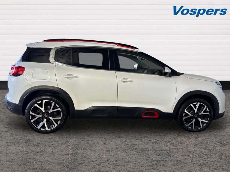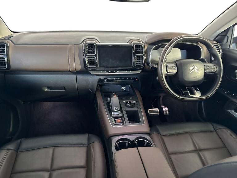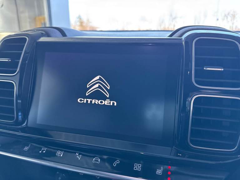 ..12.3'' customisable TFT instrument display, Active blind spot monitoring system, Active cruise control with stop and go, Active lane departure warning system, Active lane keep assist, Bluetooth telephone facility, Central 8'' capacitive touch screen, Citroen connect box emergency assist system, Citroen connected CAM, Coffee Break Alert, Driver attention alert system, Eco+ mode, Electric power steering, Extended traffic sign recognition and recommendation, Exterior temperature indicator with ice warning, Foot operated hands free tailgate includes keyless entry and start, Front parking sensors, Gear efficiency indicator, Highway driver assist, Mirror screen with mirror link, apple carplay and android auto, Multi function trip computer, Park assist function with auto parallel and bay parking, Rear parking sensors, Reversing camera displayed on the central screen, Smartphone wireless charging plate, Speed limit recognition and recommendation, Suspension with Progressive Hydraulic Cushions, 2x USB sockets in front, Auxiliary input socket, DAB (Digital Audio Broadcasting), AM/FM and MP3 compatible radio with two tweeters and four speakers, Voice recognition for radio, navigation and telephony features, 3D effect LED rear lights, Acoustic laminated front windows, Acoustic laminated windscreen with rain and brightness sensors, Airbump panels with colour insert on lower portion of the doors, Auto dimming electrochrome rear view mirror, Automatic hazard light activation upon heavy brake application, Automatic headlight activation via windscreen mounted sensors, Automatic triggered rear windscreen wiper in reverse gear, Automatic windscreen wipers, Body colour door handles, Body colour rear spoiler with stainless steel edging trim, C5 Aircross monogram on boot rear, Citroen logo and monogram on rear, Dark tinted rear windows and rear windscreen, Electric, heated and folding door mirrors with integrated LED indicator and kerb puddle light, Front fog lights with cornering function, Front windscreen wiper with magic wash cleaning system, Gloss black finish on A and B pillar and aerodynamic trim, Gloss black rear bumper facia with chrome exhaust effect trim, Gloss black rear skirt, Gloss black upper and matte black lower grille, Guide me home headlight function, Halogen headlights, Halogen rear fog lights, Halogen rear number plate lights, Headlights left on audible warning, Heated rear windscreen with integrated antenna, Intelligent high beam headlights (auto dipping