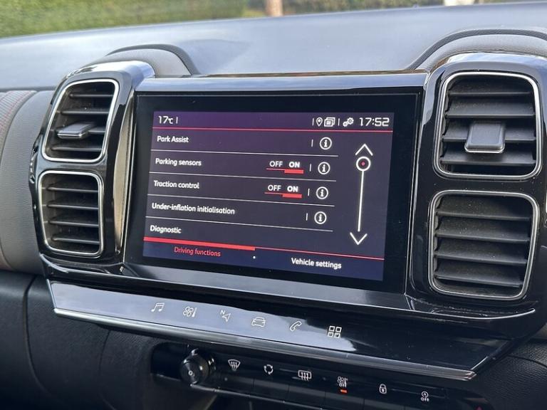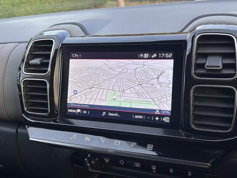 12v Socket in Boot, 12V Socket in Front of Cabin, 12V Socket in Glovebox, 2x USB Sockets, Auxiliary Socket, Bluetooth Telephone Facility, Central 8in Capacitive Touch Screen, Citroen Connect Box with Emergency and Assistance System, Citroen Connect Nav includes TomTom Live Updates (3 Year Subscription From New), DAB - Digital Audio Broadcasting - AM-FM and MP3 Compatible Radio with Two Tweeters and Four Speakers, Mirror Screen - Apple CarPlay - Android Auto, Active Blind Spot Monitoring System, Active Lane Departure Warning System, Coffee Break Alert, Collision Risk Alert, ECO Plus Mode, Exterior Temperature Indicator with Ice Warning, Front Parking Sensors, GEI - Gear Efficiency Indicator, Multifunction Trip Computer, Park Assist Function - With Auto Parallel and Bay Parking, Programmable Cruise Control with Speed Limiter, Rear Parking Sensors, Reversing Camera Displayed on the Central Screen, Traffic Sign Recognition and Recommendation, Tyre Under Inflation Indicator - Indirect System, Voice Recognition, 18in Alloy Wheels - Swirl Two Tone Diamond Cut, Acoustic Laminated Windscreen with Rain and Brightness Sensors, Airbump Panels with Colour Insert on Lower Portion of the Doors, Body Colour Door Handles, Body-Colour Rear Spoiler with Stainless Steel Edging Trim, C5 Aircross Monogramme on Boot Rear, Citroen Logo and Monogramme on Rear, Dark Tinted Rear Windows and Rear Windscreen, Electric - Heated and Folding Body Coloured Door Mirrors with Integrated LED Indicator and Kerb Puddle Light, Gloss Black - A and B Pillar, Halogen Rear Fog Lights, Halogen Rear Numberplate Lights, Heated Rear Windscreen With Integrated Antenna, LED Front Indicators, Longitudinal Roof Rails, Magic Wash, Matt Black Lower Rear Skirt, Matt Black Rear Bumper Facia with Chrome Exhaust Effect Trim, Matt Black Upper and Lower Grille, Matt Black Wheel Arch Extensions, Matte Black Side Sill with Anodised Silver Colour Touch, One-Touch Electric Front and Rear Windows with Pinch Protection, Painted Front Bumper, Painted Rear Bumper, Rear Windscreen Wiper - Triggered Automatically in Reverse Gear, Satin Chrome C Signature, Satin Chrome Window Finishers, Silver Anodized Colour Pack, Space Saver Spare Wheel, Twin Exhaust Effect Trim, 3D LED Rear Lights, Automatic Headlight Activation, Front Fog Lights with Cornering Function, Guide Me Home Headlights Function, Headlights - Halogen, Headlights Left On Audible Warning, LED Daytime Running Lights, LED High Level Central Brake Light, 12.3in Customisable TFT Instrument Display, 2 Central Illuminated Cup-Holders, 2 Position Boot Floor, 3 Independent Full Size Rear Seats with Adjustable Recline Angle, Advanced Comfort Seats, Air Recirculation When Reverse Gear is Engaged, Air Vents for Rear Seat Passengers, Aluminium Front Citroen Embossed Sill Scuff Plates, Anti Odor and Pollen Filter, Auto-Dimming Electrochrome Rear View Mirror, Automatic Dual Zone Climate Control, Automatic Windscreen Wipers, Central Front Armrest with Butterfly-Wing Opening and Illuminated Storage Compartment, ConnectedCAM Citroen, Dashboard - Open Central Storage Compartment, Driver and Front Passenger Adjustable Headrests, Electric Driver Seat Adjustment - Height - Fore/Aft and Backrest Angle, Fixing Rings in Load Area x4, Front Reading and Welcome Lights, Gear Lever - Satin Chrome, Gloss Black Touch Screen Surround with Integrated Tactile Buttons and Chrome Finisher, Grab Handles x3 - Retractable with Damping, Height and Reach Adjustable Leather Steering Wheel with 2 Control Zones, Hinged Parcel Shelf, Horn - Two-Tone, Leather Effect Dashboard Facia, Leather Effect Interior Door Handles, Manual Passenger Seat Adjustment - Height - Fore-Aft and Backrest Angle, Map Pockets on Front Seat Backs, Open Central Storage Area Below Touch Screen, Open Storage Area Next to Gear Selector, Rear Centre Console Ventilation System, Rear Coat Hooks x2, Rear Seats with Adjustable Height Headrests, Satin Chrome Air Vent Surrounds, Satin Chrome Digital Ins.