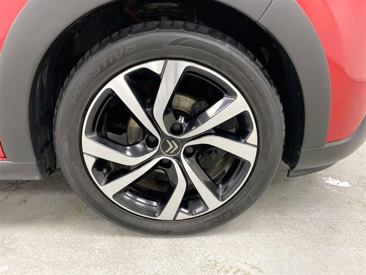 1/3 to 2/3 split folding rear seat,12V socket,17"" Vector diamond cut alloy wheels,3D rear light signature,ABS with Electronic brakeforce distribution and Emergency braking assistance,Airbump on side door panel,Anti theft alarm,Auto headlights,Automatic activation of hazard warning lights,Automatic air conditioning,Automatic door and boot locking when moving off with automatic unlocking in case of impact,Body colour bumpers,Body colour door handles,Boot light,Central locking with locked indicator and interior one touch lock button,Chrome decoration on front face, under chevrons and around daytime running lights,Citroen connected nav with DAB, 6 speakers, 7"" captive touch screen, mirror screen includes apple ca,Citroen illuminated signature in LED headlights and LED daytime running lights,Cloth/leather effect upholstery,Coffee Break Alert,Cruise control + speed limiter,Dark tinted tailgate and rear side windows,Driver and front passenger seatbelts with pyrotechnic pretensioners and force limiters,Driver and passenger's sun visor with courtesy mirror,Driver's airbag,Driver's central armrest,Driver's seat height adjustment,eCall emergency call system,Electric child locks,Electrically adjustable door mirrors,Electrically folding door mirrors,ESP with anti skid system,Exterior temperature display,Fog lights integrated into front bumper,Front lighting panel with map reading lights,Front passenger airbag,Front passenger airbag deactivation,Front seats adjustable with forward back slide and adjustable backrest,Front sequential electric windows with one-touch open/close and anti-pinch system,Front side airbags + front/rear curtain airbags,Front windscreen wipers with two speeds and intermittent mode linked to vehicle speed,Gloss black finish B pillar,Heated door mirrors,Height adjustable front head restraints,Height/reach adjust steering wheel,Hill start assist,Immobiliser,ISOFIX mounting on outer rear seats with top tether and labels indicating fixing points,Lane departure warning system,Leather steering wheel with gloss black + satin chrome elements and audio/telephone controls,Leather trimmed gear lever for automatic gearbox with leather effect gaiter and overstitching lever,LED Headlights,LED third brake light,Manual parking brake with leather handle and chrome finish button,Map pockets in back of driver and front passenger seats,Mono-tone horn,Multi function trip computer,Outer rear seats with pretensioners and force limiters,Parcel shelf,Rear parki...