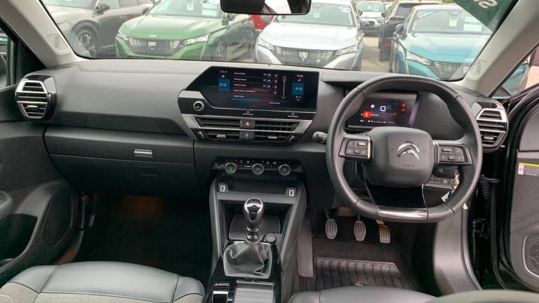 10in High Resolution Touchscreen User Interface5.5in Backlit Full-TFT Drivers Instrument ClusterCitroen Connect Box with Emergency and Assistance SystemRow 1 - 12V Power Outlet and USB Type-C Socket for Charging and Data ConnectionCruise Control with Speed LimiterRear Parking SensorsTyre Under Inflation Indicator18in Alloy Wheels - Aeroblade Diamond CutBumpers - Body ColouredCompressor with Puncture Repair KitElectric Windows - Front and RearElectrically Heated and Adjustable Door MirrorsGloss Black Rear SkirtGlossy Black Colour PackMatt Black A-Pillar and Gloss Black B-PillarObsidian Black Painted External Rear View MirrorsTinted Side Windows with Matt Black DetailAutomatic Headlight ActivationLED Daytime Running Lights in V SignatureLED Front Fog Lights with Static Cornering FunctionLED HeadlightsWelcome and Goodbye Lighting2 Position Boot FloorAutomatic Dual Zone Air ConditioningBoot LightDashboard Tray in Front CabinDriver and Passenger Sunvisor with Vanity MirrorFront and Rear Interior LightingGrained Leather Steering Wheel with Two Command BlocksHeight Adjustable Drivers Seat with Adjustable Lumbar SupportHeight Adjustable Passengers SeatHeight and Reach Adjustable Steering WheelHigh Level Acoustic Insulation PackInterior Rear View Mirror with Manual Day-Night SwitchingMap Pockets on Front Seat BacksRain Sensing Automatic Front Windscreen WipersRaised Central Console with Armrest with Two CupholdersSeats Rear - Split FoldingElectric Power SteeringSuspension with Progressive Hydraulic Cushions - PHCABS - Anti-Lock Braking SystemDriver and Front Passenger AirbagsElectric Parking BrakeESP - Electronic Stability ProgrammeFront Seat Belt PretensionersHill Start AssistIn-Crash BrakingManual Child LocksManual Deactivation of Front Passenger AirbagPost Collision Safety BrakeRemote Central Locking with DeadlockingRow 1 and 2 Curtain AirbagsRow 1 Side Thorax AirbagsSafety PackSeatbelt Unfastened on the Move WarningTwo Remote Keys