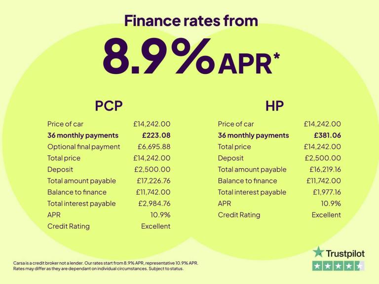 Carsa Ltd is authorised and regulated by the Financial Conduct Authority, FCA Registered Number (FRN) 935130. Carsa Ltd is a Credit Broker not a Lender. Carsa Ltd is an Introducer Appointed Representative of Nukula Limited, which is authorised and regulated by the Financial Conduct Authority, FRN 616475. (VAT No. 356789439). It is our intention to provide a high level of service at all times. However if you have reason to make a complaint about our service (in relation to Insurance Products) you should contact Nukula Limited T/A InsureThat at Sterling House, Sitka Drive, Shrewsbury Business Park, Shrewsbury, SY2 6LG. If we are unable to resolve your complaint satisfactorily, you may be entitled to refer the matter to the Financial Ombudsman Service (FOS). Further information is available by calling the FOS on [Phone number removed] or visit [Website URL removed]. You can check on the FCA's Register by visiting the FCA website [Website URL removed] or by contacting the FCA on 0800 111 6768. Lenders may pay a fixed commission to us for introducing you to them, calculated by reference to the vehicle model, product or amount you borrow. Different lenders may pay different commissions for such introductions. However, any such amounts lenders pay us will not affect the amount if interest you pay under your finance agreement, all of which are set by the lender concerned. Santander Consumer Finance also provide preferential rates to us for the funding of our vehicle stock.