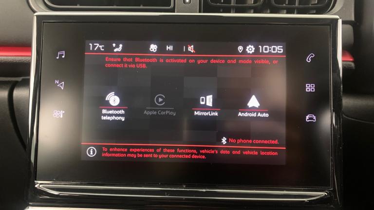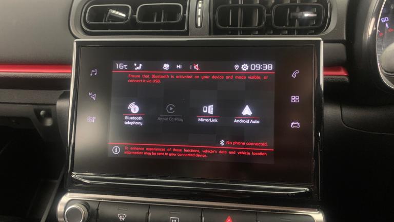 1 USB Socket12V SocketCitroen Connect DAB Radio with 6 SpeakersCoffee Break AlertCruise Control with Speed LimiterLane Departure Warning SystemMulti-Function On-Board Trip ComputerRear Parking SensorsTyre Pressure Monitor16in Alloy Wheels - Matrix - Diamond Cut3D Rear Lights SignatureAirbump on Side Door PanelAnodised Deep Red Colour PackBi-Tone Onyx Black RoofBody Colour Door HandlesBody Colour Front and Rear BumpersC-Series Style PackChrome Decoration on Front Face - Under Chevrons and around Daytime Running LightsCitroen Illuminated Signature in LED Headlights and LED Daytime Running LightsDark Tinted - Rear Side and Tailgate WindowsElectrically Adjustable - Heated Folding Door MirrorsFront Sequential Electric Windows with One-Touch - Open-Close and Anti Pinch SystemMatt Black B PillarsPerla Nera Black Rear View Mirror CapsPuncture Repair KitRear Sequential Electric Windows with One-Touch - Open-Close and Anti Pinch SystemVisibility PackFog Lights Integrated into the Front BumperLED Daytime Running LightsLED Headlights2-3 - 1-3 Split Folding Rear BenchAutomatic Air ConditioningBoot LightC-Series Carpet MatsC-Series Interior AmbienceDay-Night Switchable Interior Rear View MirrorDrivers and Passengers Sunvisor with Courtesy Mirror - Non IlluminatedFront Head Restraint with Height AdjustmentFront Lighting PanelFront Seats Adjustable with Forward-Back Slide and Adjustable BackrestGloss Black Dashboard with Grey SurroundHeight Adjustable Drivers SeatHeight and Reach Adjustable Steering WheelInstrument Cluster with White LCD and Analogue GaugesManual Parking Brake with Chrome Finish ButtonParcel ShelfRear Windscreen Wiper with Intermittent Mode Linked to Vehicle SpeedSoft-Touch Gear Lever with Leather-Effect GaiterSteering Wheel with Satin Chrome Elements and Audio-Telephone ControlsThree Rear Seats with HeadrestsUpholstered Armrest in Front and Rear DoorsPower Assisted SteeringABS - Anti-Lock Braking SystemAirbags - DriverAnti-Theft AlarmAutomatic Activation of Hazard Warning Lights in Case of Severe DecelerationAutomatic Door and Boot Locking when in MotionCentral Locking with Locked Indicators and Interior One-Touch Lock ButtonDriver and Front Seatbelts with Pyrotechnic Pretensioners and Force LimitersElectric Child LocksESP - Electronic Stability Programme with Anti-Skid SystemFront Passenger Airbag - Can be DeactivatedFront Side Airbags and Front and Rear Curtain AirbagsHill Start