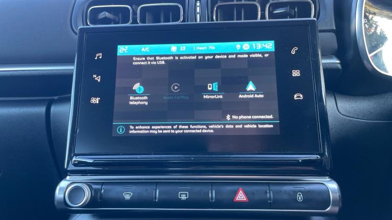 1 USB Socket12V SocketCitroen Connect DAB Radio with 6 SpeakersCoffee Break AlertCruise Control with Speed LimiterLane Departure Warning SystemMulti-Function On-Board Trip ComputerRear Parking SensorsReversing CameraTyre Pressure Monitor16in Alloy Wheels - Hellix - Bi-Tone - Diamond Cut3D Rear Lights SignatureAirbump on Side Door PanelBi-Tone Onyx Black RoofBody Colour Door HandlesBody Colour Front and Rear BumpersChrome Decoration on Front Face - Under Chevrons and around Daytime Running LightsCitroen Illuminated Signature in LED Headlights and LED Daytime Running LightsDark Tinted - Rear Side and Tailgate WindowsElectrically Adjustable - Heated Folding Door MirrorsExterior Saint James Customisation and Badges with Saint James Roof DecalFront Sequential Electric Windows with One-Touch - Open-Close and Anti Pinch SystemMatt Black B PillarsPuncture Repair KitRear Sequential Electric Windows with One-Touch - Open-Close and Anti Pinch SystemRoof-Colour Rear View Mirror CapsVisibility PackWhite Colour PackFog Lights Integrated into the Front BumperLED Daytime Running LightsLED Headlights2-3 - 1-3 Split Folding Rear BenchArmrest - Drivers CentralAutomatic Air ConditioningBoot LightDay-Night Switchable Interior Rear View MirrorDrivers and Passengers Sunvisor with Courtesy Mirror - Non IlluminatedExclusive Saint James Interior AmbienceFront Head Restraint with Height AdjustmentFront Lighting Panel with Map Reading LightsFront Seats Adjustable with Forward-Back Slide and Adjustable BackrestHeight Adjustable Drivers SeatHeight and Reach Adjustable Steering WheelInstrument Cluster with White LCD and Analogue GaugesLeather Steering Wheel with Gloss Black and Satin Chrome Elements and Audio-Telephone ControlsManual Parking Brake with Chrome Finish ButtonParcel ShelfRear Windscreen Wiper with Intermittent Mode Linked to Vehicle Speed and Automatic Activation when Reverse Gear SelectedSaint James Carpet MatsSoft-Touch Gear Lever with Leather-Effect Gaiter and OverstitchingStorage Space Under Touchscreen with Rubber MatThree Rear Seats with HeadrestsUpholstered Armrest in Front and Rear DoorsPower Assisted SteeringABS - Anti-Lock Braking SystemAirbags - DriverAnti-Theft AlarmAutomatic Activation of Hazard Warning Lights in Case of Severe DecelerationAutomatic Door and Boot Locking when in MotionCentral Locking with Locked Indicators and Interior One-Touch Lock ButtonDriver and Front Seatbelts with Pyrotechnic