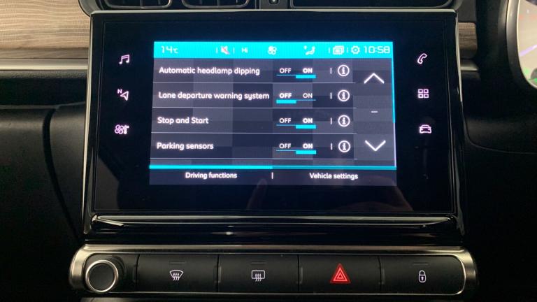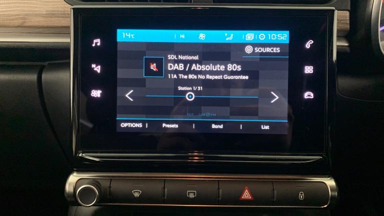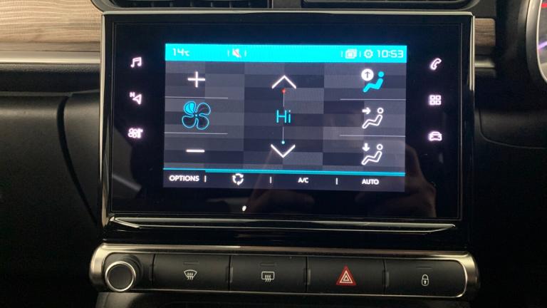 12V SocketCitroen Connect Box with Emergency and Assistance SystemCitroen Connect NavCoffee Break AlertCruise Control with Speed LimiterLane Departure Warning SystemMulti-Function On-Board Trip ComputerRear Parking SensorsReversing Camera17in Alloy Wheels - Vector - Diamond Cut3D Rear Lights SignatureAirbump on Side Door PanelBi-Tone Onyx Black RoofBlack Colour PackBody Colour Door HandlesBody Colour Front and Rear BumpersChrome Decoration on Front Face - Under Chevrons and around Daytime Running LightsCitroen Illuminated Signature in LED Headlights and LED Daytime Running LightsDark Tinted - Rear Side and Tailgate WindowsElectrically Adjustable - Heated Folding Door MirrorsFront Sequential Electric Windows with One-Touch - Open-Close and Anti Pinch SystemGloss Black B PillarsRear Sequential Electric Windows with One-Touch - Open-Close and Anti Pinch SystemRoof-Colour Rear View Mirror CapsVisibility PackFog Lights Integrated into the Front BumperLED Headlights2-3 - 1-3 Split Folding Rear BenchArmrest - Drivers CentralAuto-Dimming Electrochrome Rear View MirrorAutomatic Air ConditioningBoot LightDrivers and Passengers Sunvisor with Courtesy Mirror - Non IlluminatedFront Head Restraint with Height AdjustmentFront Lighting Panel with Map Reading LightsFront Seats Adjustable with Forward-Back Slide and Adjustable BackrestHeight Adjustable Drivers SeatHeight and Reach Adjustable Steering WheelInstrument Cluster with White LCD and Analogue Gauges - with Satin Chrome SurroundLeather Gear Lever with Leather-Effect Gaiter and OverstitchingLeather Steering Wheel with Gloss Black and Satin Chrome Elements and Audio-Telephone ControlsManual Parking Brake with Leather Handle and Chrome Finish ButtonMap Pockets in Back of Driver and Front Passenger SeatsParcel ShelfRear Windscreen Wiper with Intermittent Mode Linked to Vehicle Speed and Automatic Activation when Reverse Gear SelectedStorage Space Under Touchscreen with Rubber MatTechWood AmbienceThree Rear Seats with HeadrestsUpholstered Armrest in Front and Rear Doors1 USB ConnectionSpace Saver Spare WheelTyre Pressure Monitoring SystemPower Assisted SteeringABS - Anti-Lock Braking SystemAirbags - DriverAnti-Theft AlarmAutomatic Activation of Hazard Warning Lights in Case of Severe DecelerationAutomatic Door and Boot Locking when in MotionCentral Locking with Locked Indicators and Interior One-Touch Lock ButtonDriver and Front Seatbelts with Pyrotechnic
