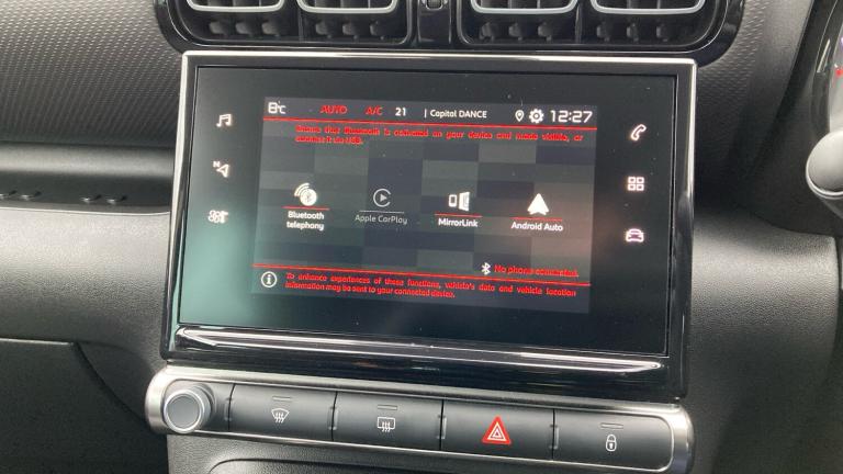 How nice is this stunning C3 Aircross. Offering an SUV in the sleek black colour along with its great MPG we are sure it will not be here for long. Our site here at Carlisle is located just 2 minutes off the M6 at junction 44 and is easily accessible from all routes. We have lots of customer parking to make your journey even easier. The site is steeped in history and has been at the forefront of car, service and parts sales for over 20 years. We also have the luxury of being able to source the perfect vehicle not only from our own stock holding of used vehicles but from the vast selection of 6000 plus across our nationwide group. With hundreds of years of experience in every department we take a massive pride in looking after each customer. All our vehicles are put through a rigorous pre preparation process prior to sale so this should give you the confidence that not only will we find you your next perfect vehicle, but you will have confidence with your onward motoring. Our facilities are fantastic, and our kettle is always on for your visit but if you prefer, we will also send you across your own personalised video of your vehicle of choice and you can reserve it from the comfort of your armchair. Either way we are excited to welcome you to the Bristol Street Motors Carlisle family and look forward to seeing you soon..Air Conditioning, Climate Control, Metallic Paint, Cruise Control, DAB Radio, Bluetooth, Parking Sensors, Stop Start, USB, Diamond Cut Alloy Wheels, Auto Lights& Rain Sensors, Custom carpet mats, Rear wiper, Electric front windows + one touch + anti-pinch, Electric rear windows with one touch/anti-pinch, Tinted rear windows and rear quarterpanel glass, Variable front intermittent wipers, Heated rear window, ABS with Electronic brakeforce distribution and Emergency braking assistance, Hill start assist function, ESC (Electronic Stability Control), Lane departure warning system, Coffee Break Alert, Variable assistance power steering, Cruise control with speed limiter, Traffic signs and speed limit recognition and recommendation, Engine start button, 7"" Capacitive colour touchscreen, Outside temperature sensor, eCall emergency call system, Mirror screen with Apple CarPlay and Android auto