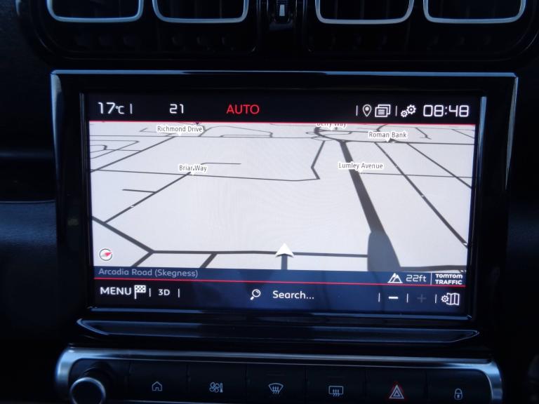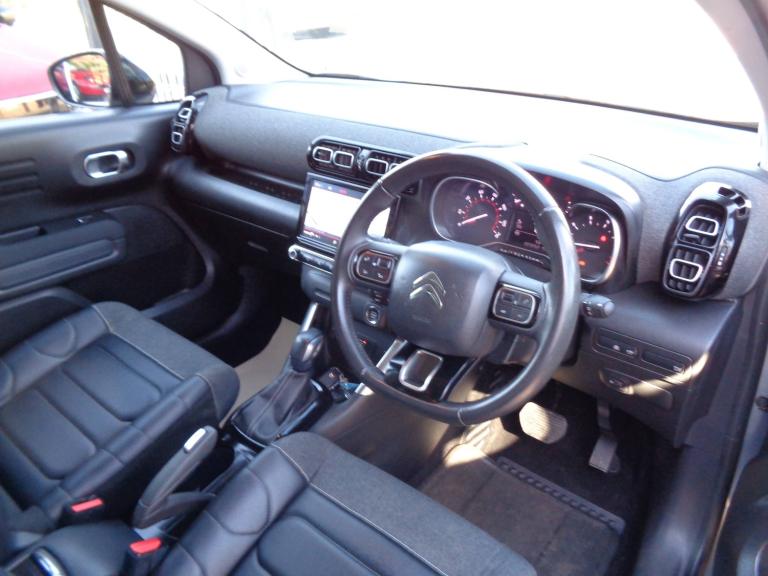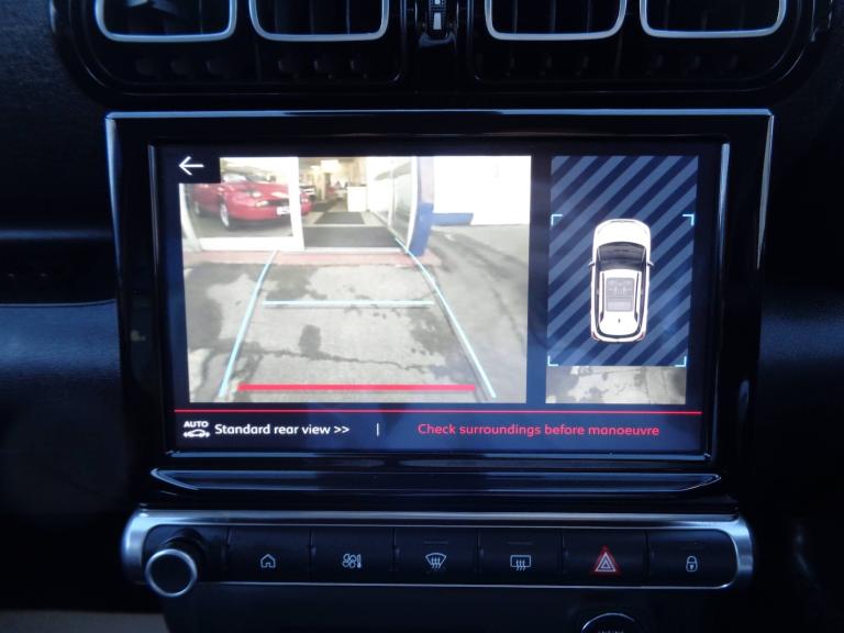 5 three point inertia reel seatbelts, ABS with Electronic brakeforce distribution and Emergency braking assistance, Active safety brake, Automatic illumination of hazard warning lights, Driver, front passenger, front lateral and curtain airbags, Drivers/passengers and rear seats unfastened seat belt warning, ESC (Electronic Stability Control), Forward collision alert, Front seatbelt pretensioners, Hill start assist function, Mono-tone horn, Rear door child safety locks, Tyre pressure monitor, Citroen connect box emergency and assistance system, Coffee Break Alert, Cruise control with speed limiter, Front parking sensors, Lane departure warning system, Mirror screen with Apple CarPlay and Android auto, Multi function on board trip computer, Rear parking sensors, Rev counter, Speed limit recognition and recommendation, Top rear vision reversing camera, Variable assistance power steering, Auto dimming electrochrome rear view mirror, Automatic lights, Automatic windscreen wipers, Body colour painted door handles, Dark tinted rear windows, Electric front windows + one touch + anti-pinch, Electric rear windows + one touch facility, Electrically adjustable door mirrors, Electrically folding door mirrors, Front and rear aluminium effect bumper protectors, Front fog lights with cornering function, Halogen headlights with LED daytime running lights, Heated door mirrors, Metallic paint, Perla nera black roof, Rear wiper, 12V socket in rear of vehicle, 2 rear isofix mounting points (outside seats) with top tether, 60/40 split folding rear seat, Automatic air conditioning, Boot light, Driver and passenger sunvisor with courtesy mirror, Flex load/Pull out boot floor, Floor console central storage with 2 cup holders, Front and rear door storage, Front and rear head restraints, Front courtesy reading lights, Front passengers seat flat folding, Height adjustable driver's seat, Height and reach adjustable steering wheel, Leather gear knob, Leather steering wheel with satin chrome inserts and radio controls, Rear centre armrest/ski flap, Sliding rear bench, Soft touch dashboard facia, Urban red ambiance pack - C3 Aircross, Automatic door and boot locking with automatic unlocking in case of impact, Immobiliser, Keyless entry and keyless start, Perimetric and volumetric anti theft alarm, Remote central locking + deadlocks, Bluetooth hands free and media streaming, Citroen connected DAB radio with 6 speakers, Steering wheel mounted controls for stereo and telephone, Compressor