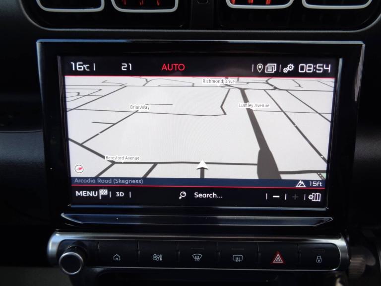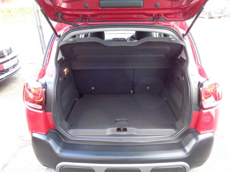 3 point, height adjustable, pre tensioned front seatbelts, ABS with Electronic brakeforce distribution and Emergency braking assistance, Automatic illumination of hazard warning lights, Curtain airbags, Driver airbag, Drivers/passengers and rear seats unfastened seat belt warning, ESC (Electronic Stability Control), Front lateral airbags, Front passenger airbag, Front passenger airbag deactivation switch, Hill start assist function, Mono-tone horn, Rear door child safety locks, Three 3 point rear seatbelts, Tyre pressure monitor, 9 inch Touchscreen display, Citroen connect box emergency and assistance system, Citroen Connect Nav with 3D navigation, Coffee Break Alert, Cruise control with speed limiter, Driver instrument cluster including trip computer and rev counter with white text LCD display and white needles and chrome decor, eCall emergency call system, Engine start button, Lane departure warning system, Mirror screen with Apple CarPlay and Android auto, Outside temperature sensor, Rear parking sensors, Traffic signs and speed limit recognition and recommendation, Variable assistance power steering, Voice recognition for radio, navigation and telephone features, 3D effect LED rear lights, Automatic Eco LED headlights, Automatic lights and windscreen wipers, Black roof bars, Body colour painted door handles, Chrome chevrons front grille, Electric front windows + one touch + anti-pinch, Electric rear windows with one touch/anti-pinch, Electrically adjustable door mirrors, Electrically folding door mirrors, Fog lights integrated into front bumper, Front and rear body coloured bumpers, Heated door mirrors, Integrated roof spoiler, LED daytime running lights, LED third brake light, Metallic paint, Monotone roof, Painted door mirrors to match colour pack, Rear side wing doors, Roof aerial, Tinted rear windows and rear quarterpanel glass, Variable front intermittent wipers, 12v socket in front, 60/40 split folding rear seat, Automatic air conditioning, Centre console with open storage, Driver and front passenger cup holders, Driver and passenger sunvisor with courtesy mirror, Flex load/Pull out boot floor, Front and rear courtesy reading lights, Front and rear door storage, Front head restraints, Gloss black air vent surrounds and steering wheel insert, Glovebox with closable lid, Height adjustable driver's seat, Height and reach adjustable steering wheel, Manual handbrake with chrome insert, Mica cloth upholstery with grey ambience, Passenger compartment