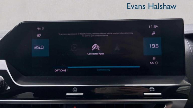 Citroen Connect Nav, 10in High Resolution Touchscreen User Interface, Head-Up Display, Parking Aid - Front and Rear and Lateral, 5.5in Backlit Full-TFT Drivers Instrument Cluster, Active Blind Spot Detection, Advanced Comfort Suspension, Citroen Connect Box with Emergency and Assistance System, Electric Power Steering, Intelligent Beam Headlights, LED Daytime Running Lights in V Signature, LED Front Fog Lights with Static Cornering Function, LED Headlights, Row 1 - 12V Power Outlet and 1x USB Type-C Socket for Charging and Data Connection and 1x USB Type-A Socket for Charging, Row 2 - 1x USB Type-A Socket for Charging - 1x USB Type-C Socket for Charging, Top Rear Vision Reversing Camera, Tyre Under Inflation Indicator, Welcome and Goodbye Lighting, 18in Alloy Wheels - Aeroblade Diamond Cut Bi-Tone, Body Colour Door Handles, Bumpers - Body Coloured, Compressor with Puncture Repair Kit, Electric Windows - Front and Rear, Electrically Heated and Folding Door Mirrors with Courtesy Lighting, Gloss Black Rear Skirt, Glossy Silver Colour Pack, Matt Black A-Pillar and Gloss Black B-Pillar, Perla Nera Black Painted Door Mirrors, Side Windows with Chrome Detail - Rear Window Dark Tinted, 2 Position Boot Floor, Ambient Lighting Around Sides of Driver Instrument Cluster, Automatic Dual Zone Air Conditioning, Boot Light, Dashboard Tray in Front Cabin, Deluxe Leather Steering Wheel with Two Command Blocks, Driver and Passenger Sunvisor with Illuminated Vanity Mirror, Electrically Heated Front Seats, Electrochrome Interior Rear View Mirror with Automatic Day-Night Switching, Front and Rear Interior Lighting - LED, Height Adjustable Drivers Seat with Adjustable Lumbar Support, Height Adjustable Passengers Seat, Height and Reach Adjustable Steering Wheel, High Level Acoustic Insulation Pack, Map Pockets on Front Seat Backs, Rain Sensing Automatic Front Windscreen Wipers, Raised Central Console with Armrest with Two Cupholders, Rear Central Folding Armrest with Cupholders with Ski Hatch, Seats Rear - Split Folding, XXL Storage in Front Cabin, ABS - Anti-lock Braking System, Anti-Theft Alarm - Volumetric Protection, Driver and Front Passenger Airbags, ESP - Electronic Stability Programme, Electric parking brake, Front Seat Belt Pretensioners, Highway Driver Assist, Hill Start Assist, In-Crash Braking, Keyless entry and start, Manual Child Locks, Manual Deactivation of Front Passenger Airbag, Remote Central Locking with Deadlocking, Row 1 Side Thorax Airbags, Row 1 and 2