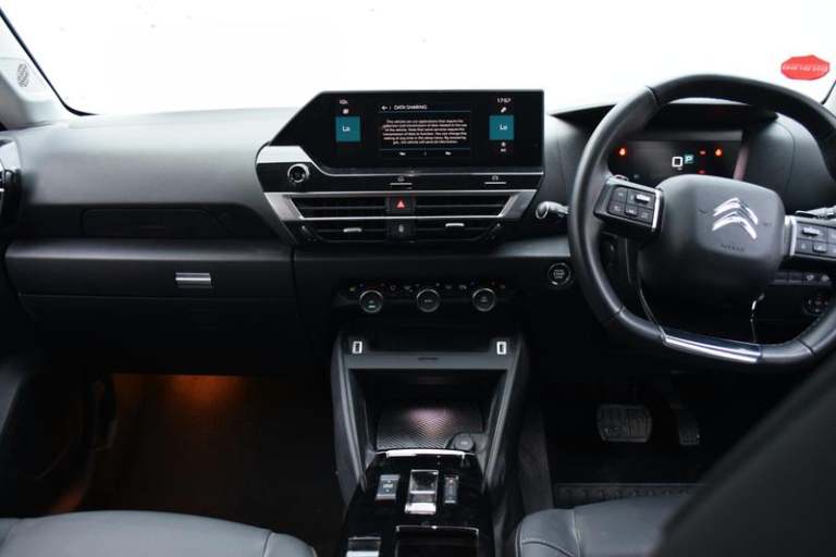 10in High Resolution Touchscreen User Interface, 5.5in Backlit Full-TFT Drivers Instrument Cluster, Citroen Connect Box with Emergency and Assistance System, Citroen Connect Nav, Row 1 - 12V Power Outlet and 1x USB Type-C Socket for Charging and Data Connection and 1x USB Type-A Socket for Charging, Row 2 - 1x USB Type-A Socket for Charging - 1x USB Type-C Socket for Charging, Active Blind Spot Detection, Head-Up Display, Parking Aid - Front and Rear and Lateral, Top Rear Vision Reversing Camera, Tyre Under Inflation Indicator, 18in Alloy Wheels - Aeroblade Diamond Cut Bi-Tone, Body Colour Door Handles, Bumpers - Body Coloured, Compressor with Puncture Repair Kit, Electric Windows - Front and Rear, Electrically Heated and Folding Door Mirrors with Courtesy Lighting, Gloss Black Rear Skirt, Glossy Silver Colour Pack, Matt Black A-Pillar and Gloss Black B-Pillar, Perla Nera Black Painted Door Mirrors, Side Windows with Chrome Detail - Rear Window Dark Tinted, Intelligent Beam Headlights, LED Daytime Running Lights in V Signature, LED Front Fog Lights with Static Cornering Function, LED Headlights, Welcome and Goodbye Lighting, 2 Position Boot Floor, Ambient Lighting Around Sides of Driver Instrument Cluster, Automatic Dual Zone Air Conditioning, Boot Light, Dashboard Tray in Front Cabin, Deluxe Leather Steering Wheel with Two Command Blocks, Driver and Passenger Sunvisor with Illuminated Vanity Mirror, Electrically Heated Front Seats, Electrochrome Interior Rear View Mirror with