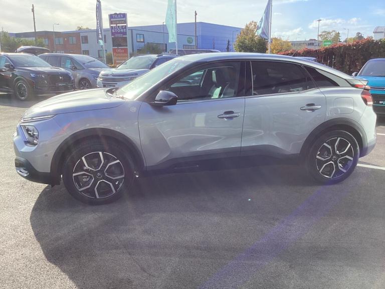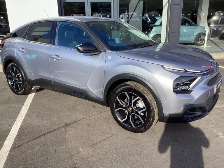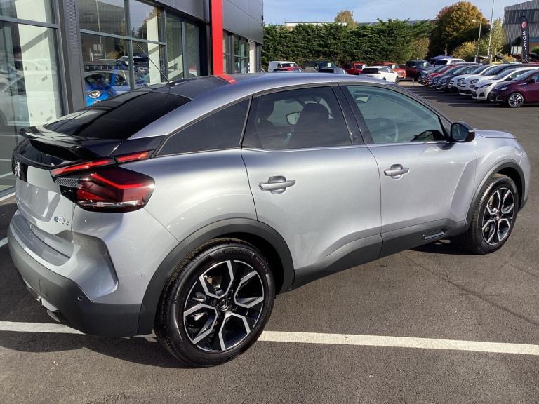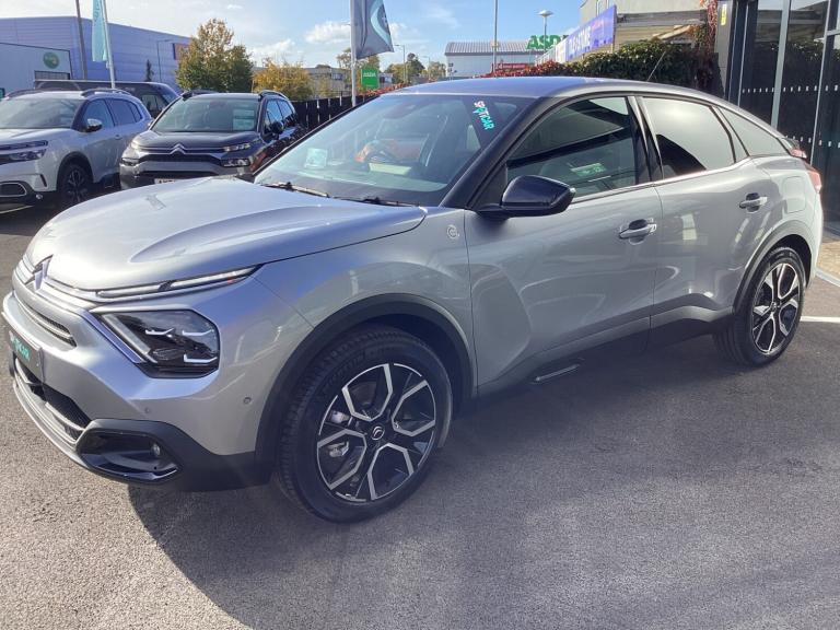 Citroen C4 100kW C-Series Edition 50kWh 5dr Auto.Rear Camera,360 Sensors, Nav.10'' high resolution touchscreen user interface, controlling media, connectivity and vehicle settings, 5.5 inch backlit full TFT driver's instrument cluster with LED ambient lighting, Active blind spot detection, Apple car play and Android auto, Citroen connect box emergency and assistance system, Citroen connect nav with real time traffic and speedcam, Driver's head-up display, Electronic Power Steering (EPS), In-crash braking, Speed limiter, Tailgate, Voice commands, 7.4 kW single-phase onboard charger, Advanced comfort suspension - double hydraulic stops on front suspension and single on rear suspension, Mode 3 charging cable with Type 2 connectors - for accelerated charging from wall boxes and dedicated public charging points, Auxiliary input socket, Bluetooth telephone and audio streaming, Citroen Hifi system with 1 speaker in dashboard centre, 4 woofers in doors, 2 tweeters in pillars and 1 subwoofer, DAB Digital radio, 3rd brake light, Automatic headlights, Body colour bumpers, Body colour door handles, Body colour painted external rear view mirrors, Body coloured door mirrors, Boot spoiler, Dark tinted rear windows and side windows with chrome detail, Electrically heated, folding and adjustable external rear view mirrors with courtesy lighting, Electrochrome interior rear-view mirror with automatic day-night switching, Front and rear electric windows, Gloss black rear skirt, Intelligent beam headlights, LED daytime running lights in V signature, LED front fog lamps with static cornering function, LED front headlamps, Rain sensing automatic front windscreen wipers, Rear side wing doors, Rear wiper, Roof aerial, Welcome and goodbye lighting, 12V power outlet, 1x USB Type-C socket charging & data connection and 1x USB Type-A socket in 1st row and 1x USB Type-A socket charging in 2nd row, 3 rear headrests, 3 seat bench in 2nd row, Boot light, Chevrons cloth and leather effect textile seat upholstery, Dashboard tray in front cabin, Deluxe leather steering wheel with two command blocks, Driver and passenger sunvisors with illuminated vanity mirrors, Dual zone automatic air conditioning, Electrically heated front seats, Front and rear LED interior lighting, Front head restraints, Heated steering wheel, Height adjustable driver's seat with adjustable lumbar support, Height adjustable front passenger seat, Height and reach adjustable steering wheel, Map pockets in rear of front