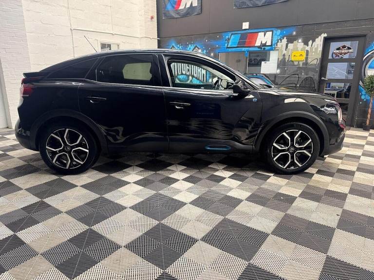 This 2022 Citroen e C4 Shine Plus offers an impressive electric driving experience with a 50 kWh battery providing a maximum range of 219 miles when new. This model benefits from a 12 month MOT provided on purchase, ensuring its road worthiness. Inside, you'll find luxurious Siena Leather and Leather Effect upholstery in Black with Zephyr Grey Stitching, complemented by a Wireless Smartphone Charging pad for your convenience. Parking is made effortless thanks to the City Park Pack, which includes a 360 Degree Camera and Parking Aid for the front, rear, and sides, along with a Top Rear Vision Reversing Camera. The Citroen e C4 Shine Plus is designed for modern driving, offering a full charge at home on a 7kW charger in approximately 7 hours and 30 minutes, and can reach 80% charge in just 30 minutes at a rapid public charging station. This electric vehicle also boasts a large boot space, making it practical for everyday use and longer journeys. The comprehensive parking assistance systems, including front, rear, and lateral sensors, along with the advanced camera technology, set this vehicle apart by simplifying manoeuvring in various environments. A 3 month warranty is also included for your peace of mind. All of our cars come prepped to the highest standard with a Full 12 Month MOT with NO Advisories & a national 3 Months Warranty that can be used at any VAT registered garage throughout the UK. Our cars have also had a full Experian HPI Vehicle History Check and get a full Valet during preparation, We can also offer extended warranties upon request (12, 24, 36 months). You can use your old car as part exchange and best prices are always offered. FINANCE IS AVAILABLE ON ALL OUR CARS, DEPOSITS TAKEN OVER THE PHONE, SPEAK TO US ABOUT HOME DELIVERY ON THIS VEHICLE, ALL MAJOR CREDIT/DEBIT CARDS ACCEPTED, YOU CAN SPEAK TO US ABOUT FINANCE ON THIS VEHICLE OR APPLY DIRECTLY FROM OUR WEBSITE. Visit our website to view all our cars at - [Website URL removed]