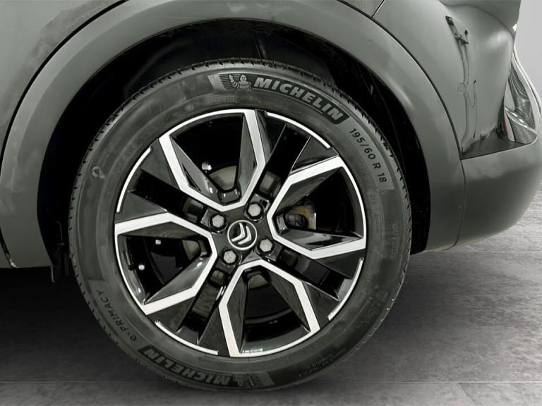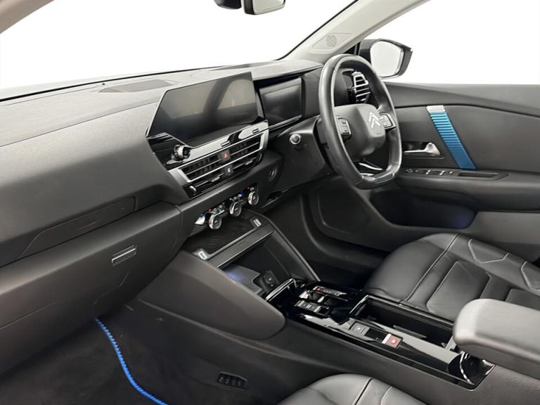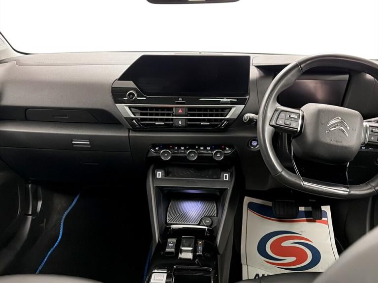 ..10'' high resolution touchscreen user interface, controlling media, connectivity and vehicle settings, 5.5 inch backlit full TFT driver's instrument cluster with LED ambient lighting, Active blind spot detection, Apple car play and Android auto, Citroen connect box emergency and assistance system, Citroen connect nav with real time traffic and speedcam, Citroen Smart Pad Support - integrated support for attaching a tablet computer for front passenger, Driver's head-up display, Electronic Power Steering (EPS), Front, rear and lateral parking sensors, In-crash braking, Speed limiter, Tailgate, Top rear vision reversing camera, Voice commands, 7.4 kW single-phase onboard charger, Advanced comfort suspension - double hydraulic stops on front suspension and single on rear suspension, Mode 3 charging cable with Type 2 connectors - for accelerated charging from wall boxes and dedicated public charging points, Bluetooth telephone and audio streaming, DAB Digital radio, 3rd brake light, Automatic headlights, Body colour bumpers, Body colour door handles, Boot spoiler, Dark tinted rear windows and side windows with chrome detail, Electrically heated, folding and adjustable external rear view mirrors with courtesy lighting, Electrochrome interior rear-view mirror with automatic day-night switching, Front and rear electric windows, Gloss black rear skirt, Intelligent beam headlights, LED daytime running lights in V signature, LED front fog lamps with static cornering function, LED front headlamps, Perla Nera black painted external rear view mirrors, Rain sensing automatic front windscreen wipers, Rear side wing doors, Rear wiper, Roof aerial, Welcome and goodbye lighting, 12V power outlet, 1x USB Type-C socket & data connection, 1x USB Type-A socket at 1st row + 1x USB Type-A socket , 1x USB Type-C socket in 2nd row, 3 rear headrests, 3 seat bench in 2nd row, Boot light, Dashboard tray in front cabin, Deluxe leather steering wheel with two command blocks, Driver and passenger sunvisors with illuminated vanity mirrors, Dual zone automatic air conditioning, Electrically heated front seats, Front and rear LED interior lighting, Front head restraints, Heated steering wheel, Height adjustable front passenger seat, Height and reach adjustable steering wheel, Map pockets in rear of front seats, Raised centre console with armrest and two cup holders, Rear central folding armrest with cupholders and ski hatch, Remote temperature pre-conditioning, Single front passenger