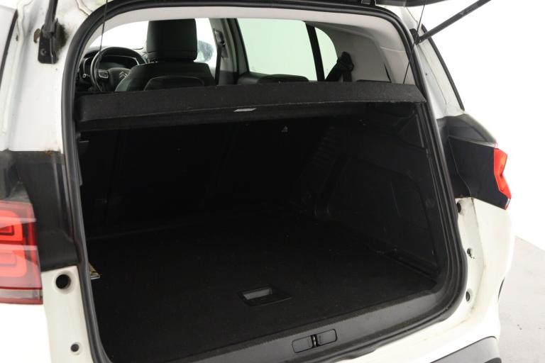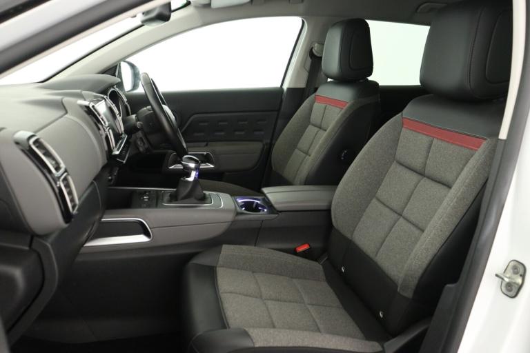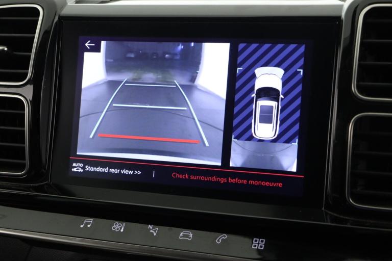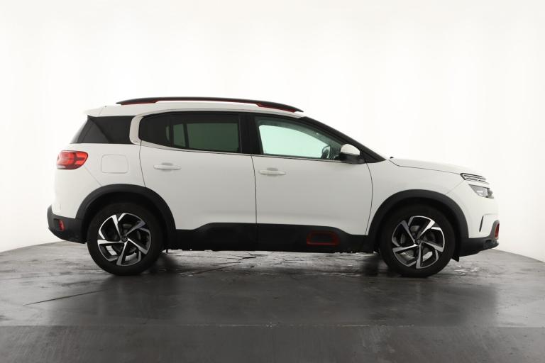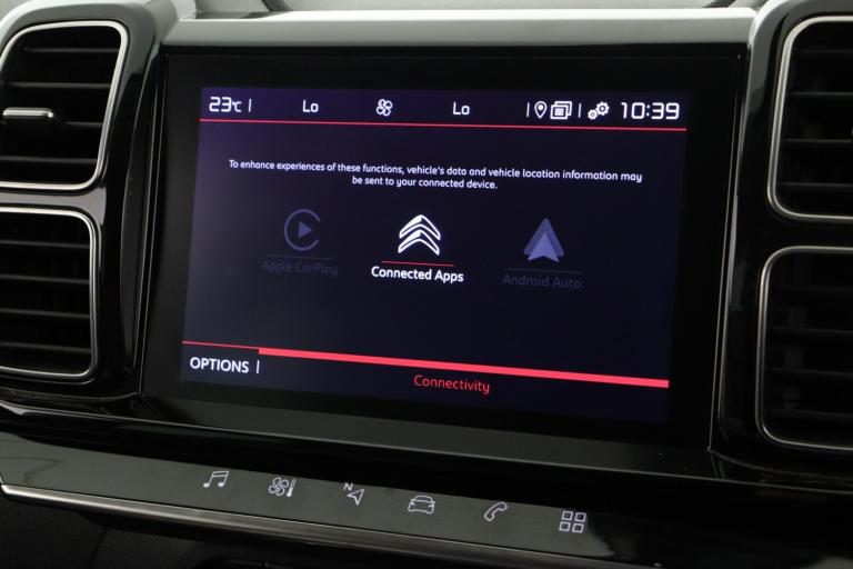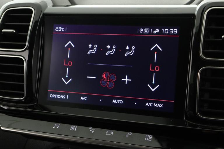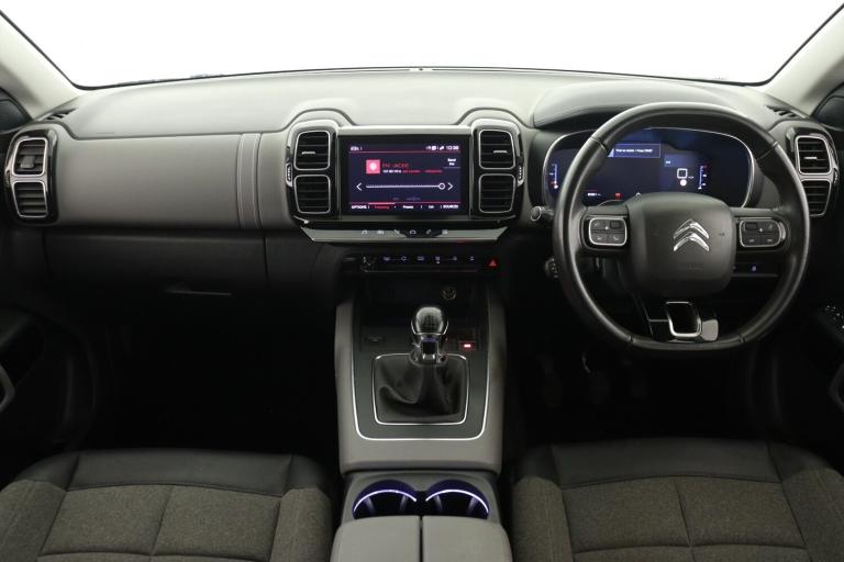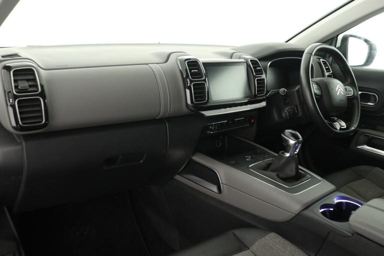 ..12.3'' customisable TFT instrument display, Active lane departure warning system, Bluetooth telephone facility, Central 8'' capacitive touch screen, Citroen connect box emergency assist system, Citroen connect Nav with connect box, Coffee Break Alert, Driver attention alert system, Eco+ mode, Electric power steering, Exterior temperature indicator with ice warning, Front parking sensors, Gear efficiency indicator, Mirror screen with Apple CarPlay and Android auto, Multi function trip computer, Programmable cruise control and speed limiter, Rear parking sensors, Speed limit recognition and recommendation, Top rear vision reversing camera, Traffic sign recognition and recommendation, Suspension with Progressive Hydraulic Cushions, 2 USB sockets, Auxiliary input socket, DAB (Digital Audio Broadcasting), AM/FM and MP3 compatible radio with two tweeters and four speakers, Voice recognition for radio, navigation and telephony features, 3D effect LED rear lights, Acoustic laminated windscreen with rain and brightness sensors, Airbump panels with colour insert on lower portion of the doors, Auto dimming electrochrome rear view mirror, Auto headlights, Automatic hazard light activation upon heavy brake application, Automatic triggered rear windscreen wiper in reverse gear, Body colour door handles, C5 Aircross monogram on boot rear, Chrome exhaust trim, Citroen logo and monogram on rear, Dark tinted rear windows and rear windscreen, Electric, heated and folding door mirrors with integrated LED indicator and kerb puddle light, Front fog lights with cornering function, Front windscreen wiper with magic wash cleaning system, Gloss black finish on A and B pillar and aerodynamic trim, Guide me home headlight function, Halogen rear fog lights, Halogen rear number plate lights, Headlights left on audible warning, Heated rear windscreen with integrated antenna, High level LED centre brake light, LED daytime running lights, LED front indicators, LED Headlights, Longitudinal roof bars, Matt black rear bumper fascia, Matt black side sill, Matt black upper and lower grille with chrome decor, Matte black lower rear skirt, Matte black wheel arch extensions, One touch electric front/rear windows with pinch protection, Painted front bumper, Painted rear bumper, Rear side wing doors, Roof coloured rear spoiler with stainless edging trim, Satin chrome C signature, Satin chrome window surround, Twin exhaust effect trim, 12V socket in boot, 12V socket in cabin, 2 Central cup