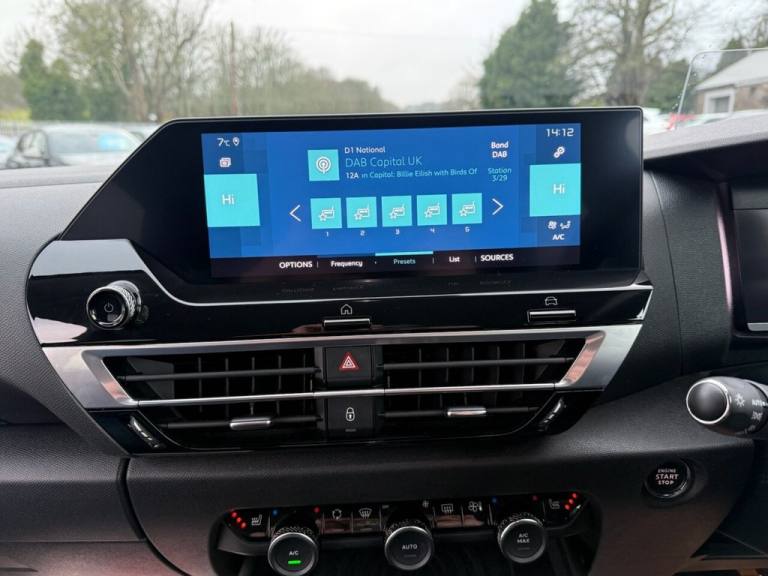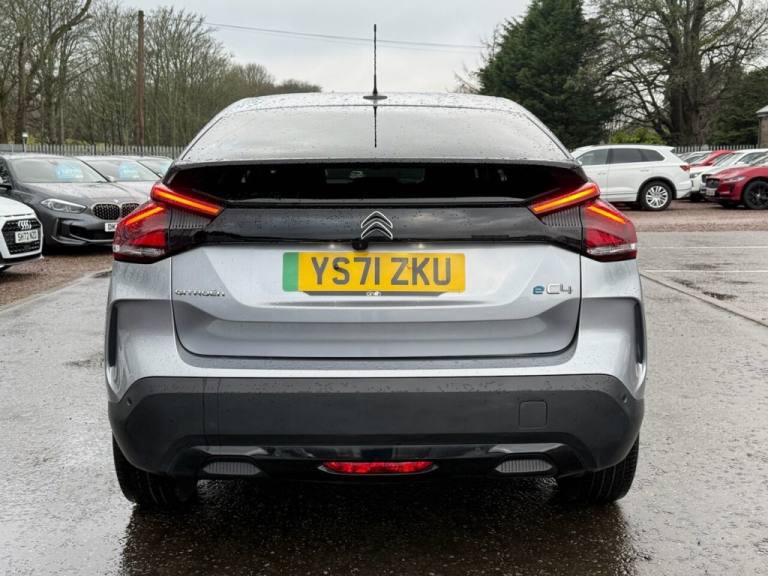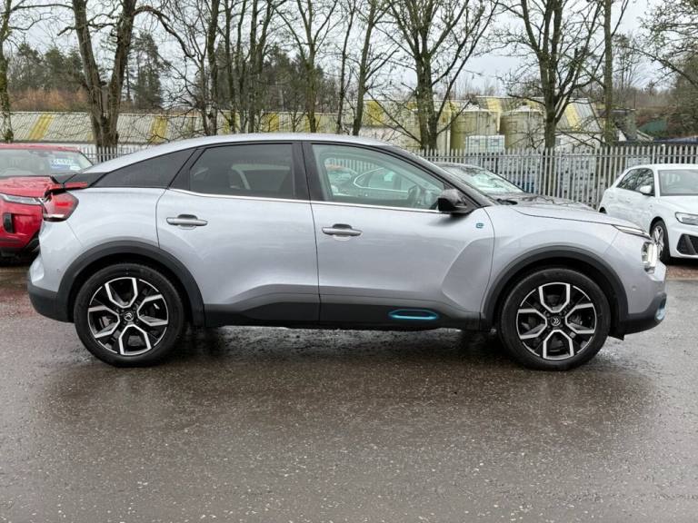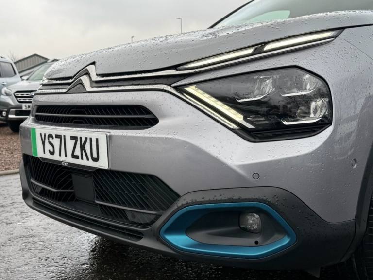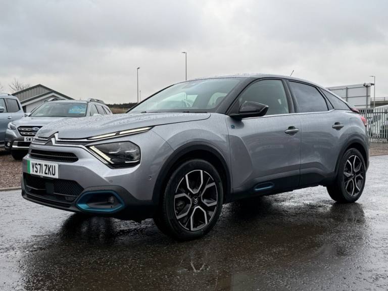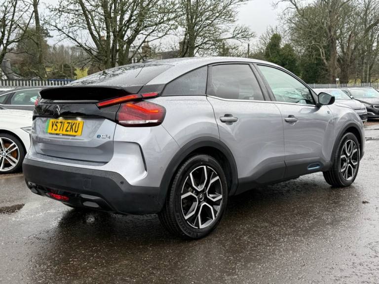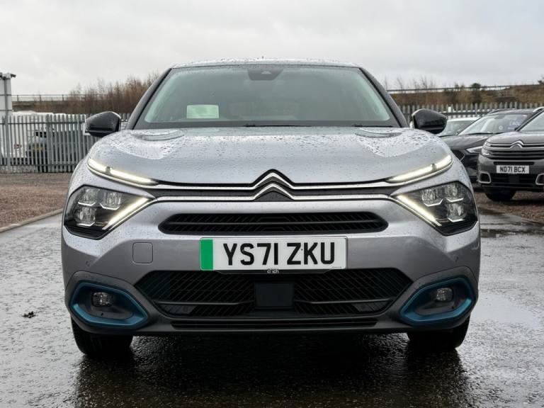 The 2022 Citroën e-C4 50kWh Shine Plus is a stylish and comfortable fully electric hatchback designed for modern, eco-friendly driving. Powered by a 50kWh battery and an electric motor producing 136 bhp, it delivers smooth, quiet performance and excellent refinement. The automatic drivetrain offers effortless acceleration, low running costs and an intuitive driving experience — ideal for everyday use, commuting or longer trips. The Shine Plus trim adds a strong level of specification, featuring a large infotainment touchscreen with smartphone integration, navigation, premium upholstery, dual-zone climate control and advanced driver assistance systems. Citroëns contemporary cabin design prioritises comfort, with supportive seating and plenty of space for passengers and luggage. Charging is easy thanks to the 7.4kW onboard charger, allowing quicker home or public AC charging, while a well-engineered platform provides a balanced ride with confident handling and great visibility. A refined, efficient and well-equipped electric hatchback that combines practicality with modern technology and everyday usability. All of our vehicles are HPI checked with full report supplied at point of sale. Where applicable a new MOT will be completed prior to delivery. This car comes with 3 months scotsure warranty ( Extended warranty available ) Also comes with free delivery anywhere in the uk..Siena Leather and Leather Effect - Black with Zephyr Grey Stitching, Cumulus Grey, 10in High Resolution Touchscreen User Interface, 18in Alloy Wheels - Bi-Tone Crosslight Diamond Cut, 2 Position Boot Floor, 5.5in Backlit Full-TFT Drivers Instrument Cluster, 7.4kW Single-Phase Onboard Charger, ABS - Anti-Lock Braking System, Active Blind Spot Detection, Ambient Lighting Around Sides of Driver Instrument Cluster, Anodised Blue Colour Pack, Anti-Theft Alarm - Volumetric Protection, Automatic Dual Zone Air Conditioning, Automatic Headlight Activation with High Beam Assist, Body Colour Door Handles, Body Coloured Door Mirrors, Boot Light, Bumpers - Body Coloured, Citroen Connect Box with Emergency and Assistance System, Citroen Connect Nav, Citroen HiFi System, City Smart Pad Support - Universal Tablet Cradle, Compressor with Puncture Repair Kit, Dashboard Tray in Front Cabin, Deluxe Leather Steering Wheel with Two Command Blocks, Driver and Front Passenger Airbags, Driver and Passenger Sunvisor with Illuminated Vanity Mirror, ESP - Electronic Stability Programme, Electric Menu System, Electric Parking Brake, Electric Power Steering, Electric Windows - Front and Rear, Electrically Heated Front Seats, Electrically Heated and Folding Door Mirrors with Courtesy Lighting, Electrochrome Interior Rear View Mirror with Automatic Day-Night Switching, Fitted Carpet Mats, Front Seat Belt Pretensioners, Front and Rear Interior Lighting - LED, Gloss Black Rear Skirt, Head-Up Display, Heated Steering Wheel, Height Adjustable Drivers Seat with Adjustable Lumbar Support, Height Adjustable Passengers Seat, Height and Reach Adjustable Steering Wheel, High Level Acoustic Insulation Pack, Highway Driver Assist, Hill Start Assist, In-Crash Braking, Keyless Entry and Start, LED Daytime Running Lights in V Signature, LED Front Fog Lights with Static Cornering Function, LED Headlights, Manual Child Locks, Manual Deactivation of Front Passenger Airbag, Map Pockets on Front Seat Backs, Matt Black A-Pillar and Gloss Black B-Pillar, Mode 3 Charging Cable with Type 2 Connectors, Parking Aid - Front and Rear and Lateral, Rain Sensing Automatic Front Windscreen Wipers, Raised Central Console with Armrest with Two Cupholders, Rear Central Folding Armrest with Cupholders with Ski Hatch, Remote Central Locking with Deadlocking, Remote Temperature Pre-Conditioning, Row 1 - 12V Power Outlet and 1x USB Type-C Socket for Charging and Data Connection and 1x USB Type-A Socket for Charging, Row 1 Sid