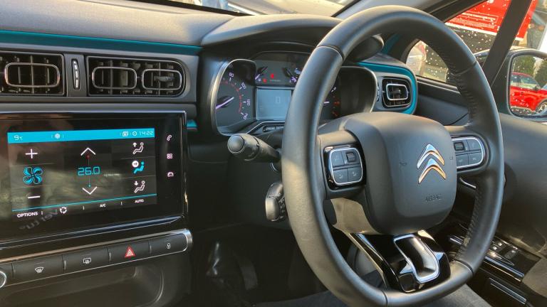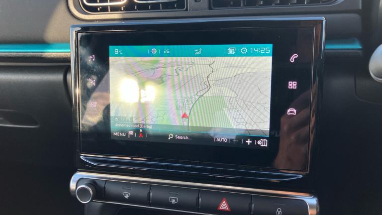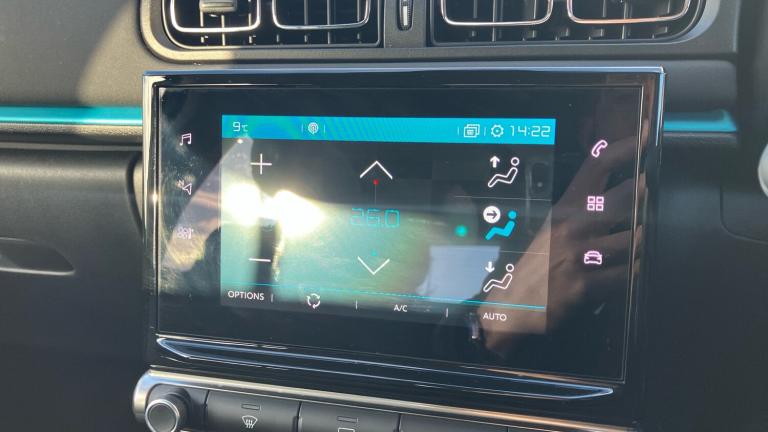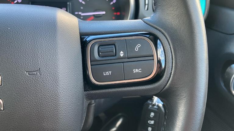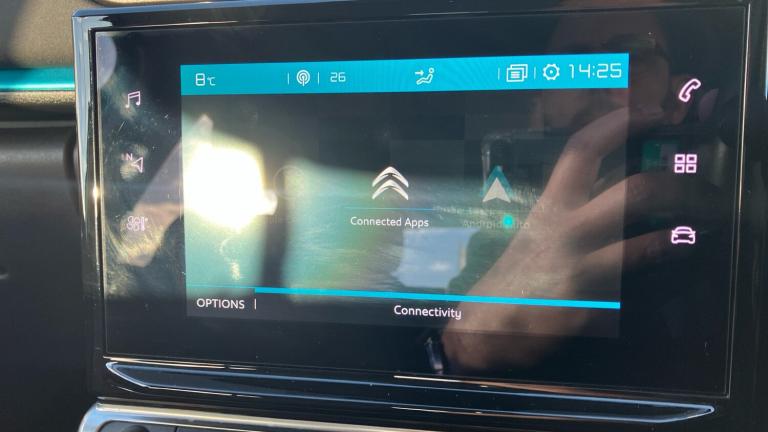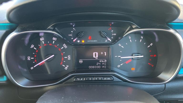 .Storage space under touchscreen with rubber mat, Dark tinted tailgate and rear side windows, Rear windscreen wiper with intermittent mode linked to vehicle speed and automatic activation when reverse gear selected, Front sequential electric windows with one-touch open/close and anti-pinch system, Rear sequential electric windows with one-touch open/close and anti-pinch system, Front windscreen wipers with two speeds and intermittent mode linked to vehicle speed, Hill start assist, ABS with Electronic brakeforce distribution and Emergency braking assistance, Manual parking brake with leather handle and chrome finish button, ESP with anti skid system, Cruise control + speed limiter, Reversing camera, Coffee Break Alert, Variable assistance power steering, Lane departure warning system, Exterior temperature display, Satin chrome surround instrument cluster with white LCD and analogue gauges, Multi function trip computer, Citroen connected nav with DAB, 6 speakers