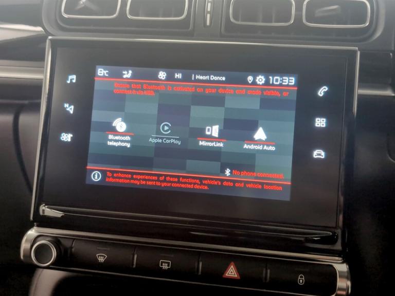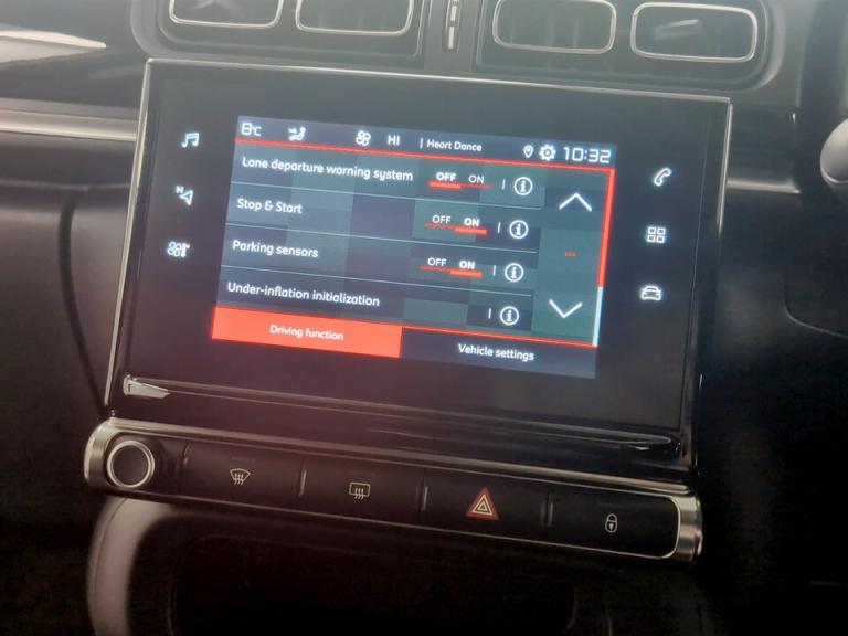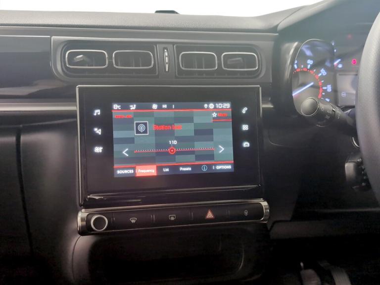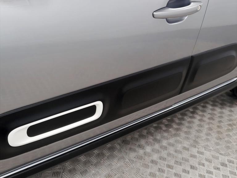 ..Coffee Break Alert, Cruise control + speed limiter, eCall emergency call system, Exterior temperature display, Instrument cluster with white LCD and analogue gauges, Lane departure warning system, Multi function trip computer, Rear parking sensors, Reversing camera, Variable assistance power steering, USB connection, 3D rear light signature, Airbump on side door panel, Automatic activation of hazard warning lights, Body colour bumpers, Body colour door handles, Chrome decoration on front face, under chevrons and around daytime running lights, Citroen illuminated signature in LED headlights and LED daytime running lights, Dark tinted tailgate and rear side windows, Electrically adjustable door mirrors, Electrically folding door mirrors, Fog lights integrated into front bumper, Front sequential electric windows with one-touch open/close and anti-pinch system, Heated door mirrors, LED Headlights, LED third brake light, Matt black finish B pillar, Rear sequential electric windows with one-touch open/close and anti-pinch system, Rear side wing doors, Rear windscreen wiper with intermittent mode linked to vehicle speed and automatic activation when reverse gear selected, Standard day night switchable interior rear view mirror, 1/3 to 2/3 split folding rear seat, 12V socket, Automatic air conditioning, Boot light, Cloth upholstery, Driver and passenger's sun visor with courtesy mirror, Driver's seat height adjustment, Front lighting panel with map reading lights, Front seats adjustable with forward back slide and adjustable backrest, Height adjustable front head restraints, Height/reach adjust steering wheel, ISOFIX mounting on outer rear seats with top tether and labels indicating fixing points, Parcel shelf, Row 2 - Three seats with individually adjustable head rests, Seatbelt unfastened on the move audible and visual alert for front and rear seats, Single front passenger seat, Soft touch gear lever with leather effect gaiter and overstitching, Standard ambience, Steering wheel with satin chrome elements and audio/telephone controls, Three rear headrests, Upholstered armrest in front and rear doors, Safety pack 1 - C3, Visibility pack with automatic lights - C3, ABS with Electronic brakeforce distribution and Emergency braking assistance, Driver and front passenger seatbelts with pyrotechnic pretensioners and force limiters, Driver's airbag, Electric child locks, ESP with anti skid system, Front passenger airbag, Front passenger airbag deactivation, Front