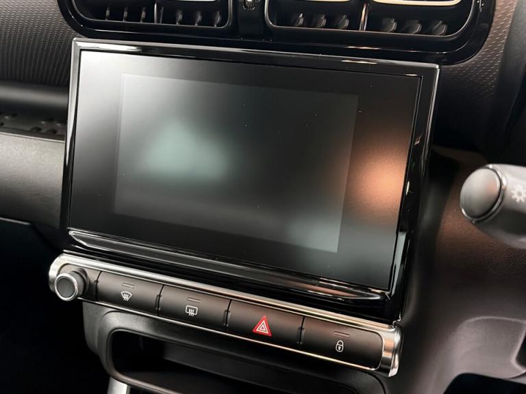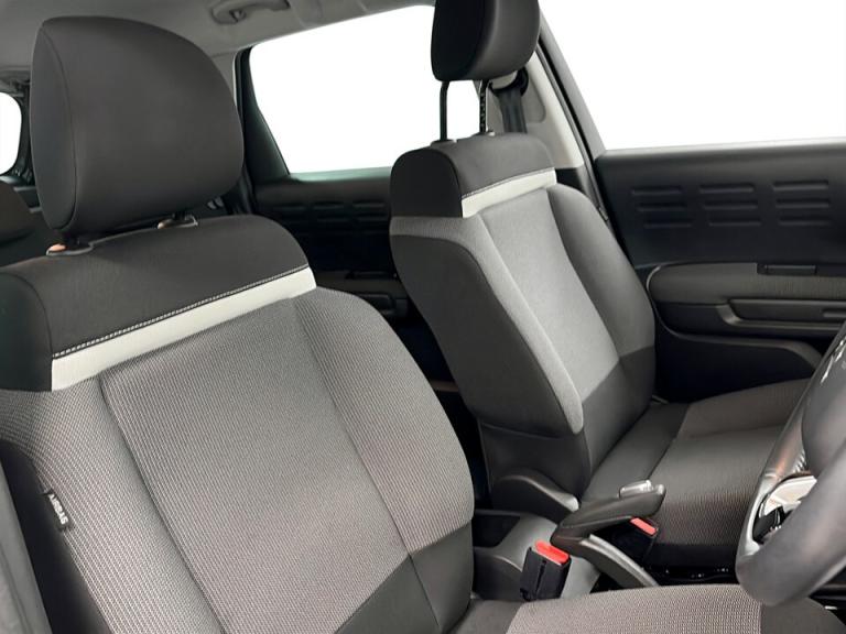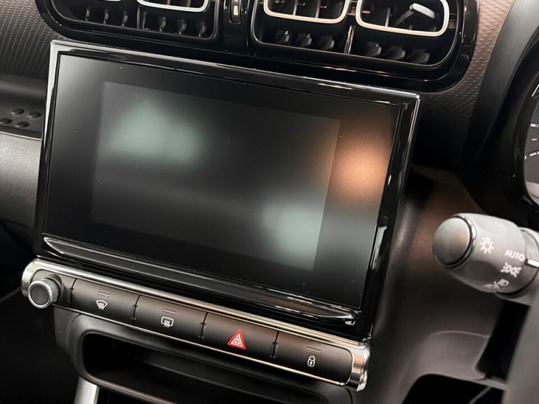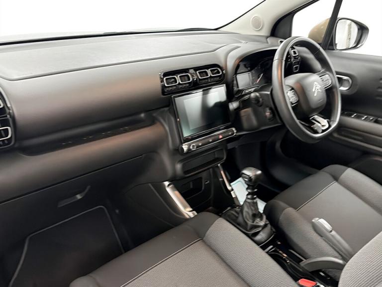 ..7'' Capacitive colour touchscreen, Coffee Break Alert, Cruise control with speed limiter, Driver instrument cluster including trip computer and rev counter with white text LCD display and white needles, eCall emergency call system, Engine start button, Lane departure warning system, Mirror screen with Apple CarPlay and Android auto, Outside temperature sensor, Rear parking sensors, Tailgate, Traffic signs and speed limit recognition and recommendation, Variable assistance power steering, Bluetooth hands free and media streaming with USB socket, Citroen connected DAB radio with 6 speakers, Steering wheel mounted controls for stereo and telephone, 3D C-series embossed exterior signature, 3D effect LED rear lights, Automatic Eco LED headlights, Automatic lights and windscreen wipers, Black roof bars, Body colour painted door handles, Chrome chevrons front grille, Electric front windows + one touch + anti-pinch, Electric rear windows with one touch/anti-pinch, Electrically adjustable door mirrors, Electrically folding door mirrors, Fog lights integrated into front bumper, Front and rear body coloured bumpers, Heated door mirrors, Heated rear window, Integrated roof spoiler, LED daytime running lights, LED third brake light, Painted door mirrors to match colour pack, Rear side wing doors, Rear wiper, Tinted rear windows and rear quarterpanel glass, Variable front intermittent wipers, 12V socket in front, 60/40 split folding rear seat, Automatic air conditioning, Boot light, Centre console with open storage, Custom carpet mats, Driver and front passenger cup holders, Driver and passenger sunvisor with courtesy mirror, Front and rear courtesy reading lights, Front and rear door storage, Front head restraints, Gloss black air vent surrounds and steering wheel insert, Glovebox with closable lid, Height adjustable driver's seat, Height and reach adjustable steering wheel, Manual handbrake with chrome insert, Mica cloth upholstery with grey ambience, Passenger compartment headlight adjustment, Rear isofix mounting points (outside seats) with top tether, Row 2 - Three seats with individually adjustable head rests, Satin chrome interior door handles, Single front passenger seat, Soft touch dashboard facia, Anodised bronze exterior colour pack - C3 Aircross, 3 point, height adjustable, pre tensioned front seatbelts, ABS with Electronic brakeforce distribution and Emergency braking assistance, Automatic illumination of hazard warning lights, Curtain airbags, Driver