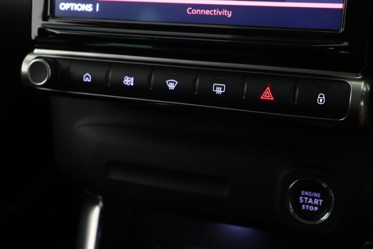 ..9'' Touchscreen display, Citroen connect box emergency and assistance system, Citroen Connect Nav with 3D navigation, Coffee Break Alert, Cruise control with speed limiter, Driver instrument cluster including trip computer and rev counter with white text LCD display and white needles and chrome decor, eCall emergency call system, Engine start button, Lane departure warning system, Mirror screen with Apple CarPlay and Android auto, Outside temperature sensor, Rear parking sensors, Tailgate, Top rear vision reversing camera, Traffic signs and speed limit recognition and recommendation, Variable assistance power steering, Voice recognition for radio, navigation and telephone features, Bluetooth hands free and media streaming with USB socket, Citroen connected DAB radio with 6 speakers, Steering wheel mounted controls for stereo and telephone, 3D effect LED rear lights, Automatic Eco LED headlights, Automatic lights and windscreen wipers, Black roof bars, Body colour painted door handles, Chrome chevrons front grille, Electric front windows + one touch + anti-pinch, Electric rear windows with one touch/anti-pinch, Electrically adjustable door mirrors, Electrically folding door mirrors, Electrochrome rear view mirror, Fog lights integrated into front bumper, Front and rear body coloured bumpers, Heated door mirrors, Heated rear window, Integrated roof spoiler, LED daytime running lights, LED third brake light, Painted door mirrors to match colour pack, Rear side wing doors, Rear wiper, Roof aerial, Tinted rear windows and rear quarterpanel glass, Variable front intermittent wipers, 12V socket in front, 12V socket in rear of vehicle, 60/40 split folding rear seats with sliding rear bench, centre armrest and ski flap, Automatic air conditioning, Boot light, Central adjustable armrest on drivers seat, Centre console with closed storage and chrome insert, Driver and front passenger cup holders, Driver and passenger sunvisor with courtesy mirror, Flex load/Pull out boot floor, Front and rear courtesy reading lights, Front and rear door storage, Front head restraints, Front passengers seat flat folding, Glovebox with closable lid, Height adjustable driver's seat, Height and reach adjustable steering wheel, Integrated retractable rear side window sun blinds, Leather steering wheel with satin chrome inserts and radio controls, Manual handbrake with chrome insert, Passenger compartment headlight adjustment, Rear isofix mounting points (outside seats) with top tether,