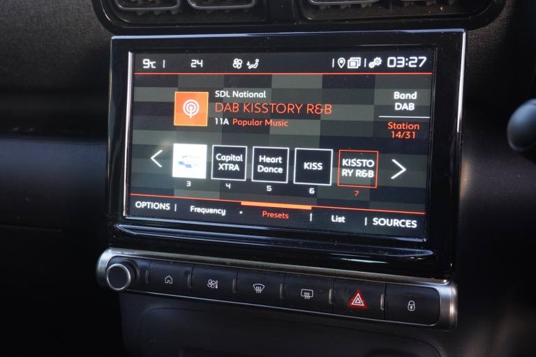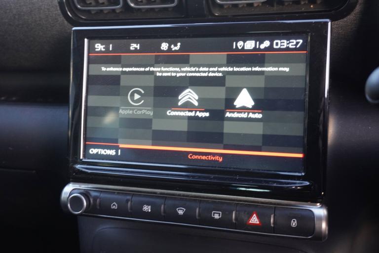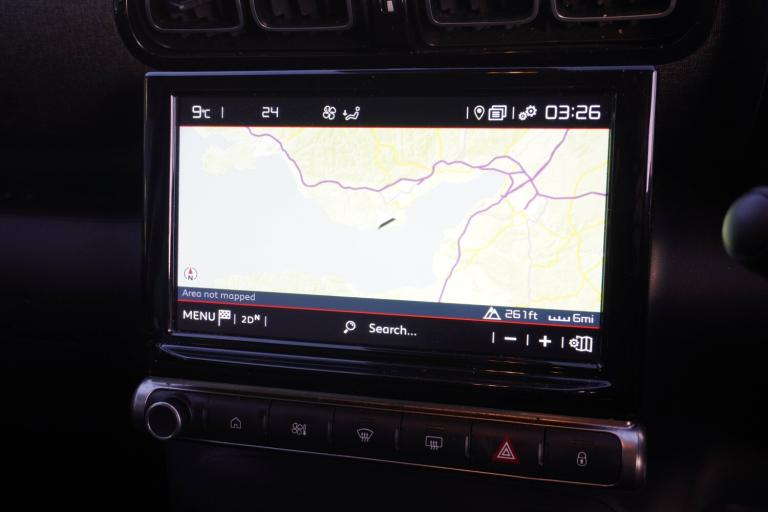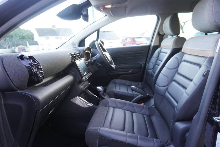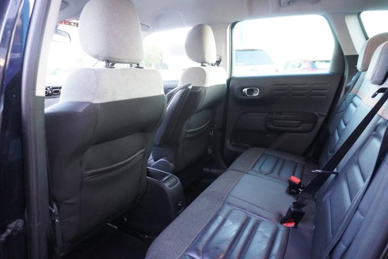 3 point, height adjustable, pre tensioned front seatbelts, ABS with Electronic brakeforce distribution and Emergency braking assistance, Active safety brake including Forward collision warning, Automatic illumination of hazard warning lights, Curtain airbags, Driver airbag, Drivers/passengers and rear seats unfastened seat belt warning, ESC (Electronic Stability Control), Front lateral airbags, Front passenger airbag, Front passenger airbag deactivation switch, Hill start assist function, Mono-tone horn, Rear door child safety locks, Three 3 point rear seatbelts, Tyre pressure monitor, 9 inch Touchscreen display, Citroen connect box emergency and assistance system, Citroen Connect Nav with 3D navigation, Coffee Break Alert, Cruise control with speed limiter, Driver instrument cluster including trip computer and rev counter with white text LCD display and white needles and chrome decor, eCall emergency call system, Engine start button, Lane departure warning system, Mirror screen with Apple CarPlay and Android auto, Outside temperature sensor, Rear parking sensors, Tailgate, Top rear vision reversing camera, Traffic signs and speed limit recognition and recommendation, Variable assistance power steering, Voice recognition for radio, navigation and telephone features, 3D effect LED rear lights, Automatic Eco LED headlights, Automatic lights and windscreen wipers, Black roof bars, Body colour painted door handles, Chrome chevrons front grille, Electric front windows + one touch + anti-pinch, Electric rear windows with one touch/anti-pinch, Electrically adjustable door mirrors, Electrically folding door mirrors, Electrochrome rear view mirror, Fog lights integrated into front bumper, Front and rear body coloured bumpers, Heated door mirrors, Heated rear window, Integrated roof spoiler, LED daytime running lights, LED third brake light, Painted door mirrors to match colour pack, Perla nera black roof, Rear side wing doors, Rear wiper, Roof aerial, Solid paint, Tinted rear windows and rear quarterpanel glass, Variable front intermittent wipers, 12V socket in front, 12V socket in rear of vehicle, 60/40 split folding rear seats with sliding rear bench, centre armrest and ski flap, Automatic air conditioning, Boot light, Brasilia leather effect and flecked cloth upholstery with metropolitan graphite ambience, advanced comfort seats, Central adjustable armrest on drivers seat, Centre console with closed storage and chrome insert, Driver and front passenger cup