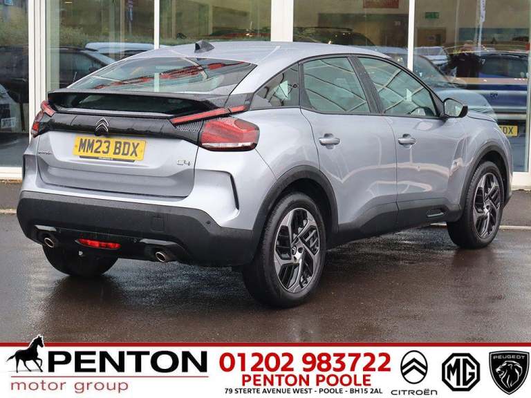 LOW MILEAGE, 23 REG, HIGHER SENSE PLUS SPEC with the AWARD WINNING 1.2 PureTech PETROL ENGINE in SOUGHT AFTER 8 SPEED AUTO VERSION with the AWARD WINNING 1.2 PURETECH 130hp PETROL ENGINE, SATELLITE NAVIGATION, TOUCHSCREEN with APPLE CARPLAY and ANDROID AUTO, REVERSE CAMERA, HEAD UP DISPLAY, ELECTRIC FOLDING MIRRORS, CRUISE CONTROL, DUAL ZONE CLIMATE, PARKING SENSORS, 18in BI-TONE ALLOYS, FULL CITROEN SERVICE HISTORY, ONE OWNER from NEW, CITROEN WARRANTY to MAY 2026, LOOKS SMART in CUMULUS GREY METALLIC, CITROEN MAIN DEALER, ASK ABOUT OUR 3 YEAR PENTON SERVICE PLAN NOW ONLY 699, We have a team of buyers who work very hard to make sure we have the most desirable vehicles in great condition and at the best prices as a result we sell cars to people all over the country, We're a Main Dealer Group in business for over 30 years who are serious about used cars with over 250 physical all make used cars on each site so you can trust all cars are prepared to MAIN DEALER STANDARDS, This vehicle is HPI CLEAR and a FULLY CHECKED Penton Motor Group Approved Used Car. All of our cars are Finance Clear and we never sell write offs, Most cars will be ready to DRIVE AWAY TODAY with 7 Days Free Driveaway Insurance. Finance Available. ALL PART EXCHANGES WELCOME. Warranty Included. Penton Citroen THE BIG Citroen Dealer. Citroen C4 instock including Exclusive. Selection. Feel. Flair. Edition. Platinum. Sense. Shine. Plus. Diesel. 110. 115. 120. 130.0Auto. Manual. ETG & EAT some Leather. Sat Nav. Sunroof. THE PENTON WHOLESALE PRICE: