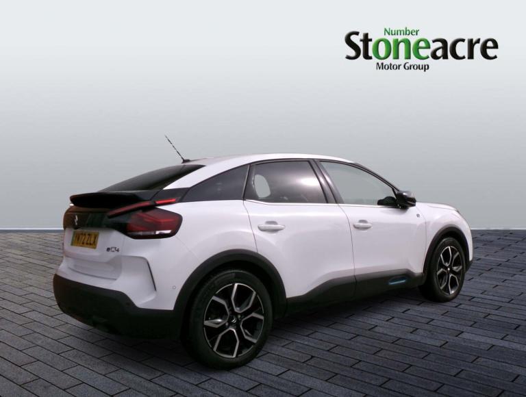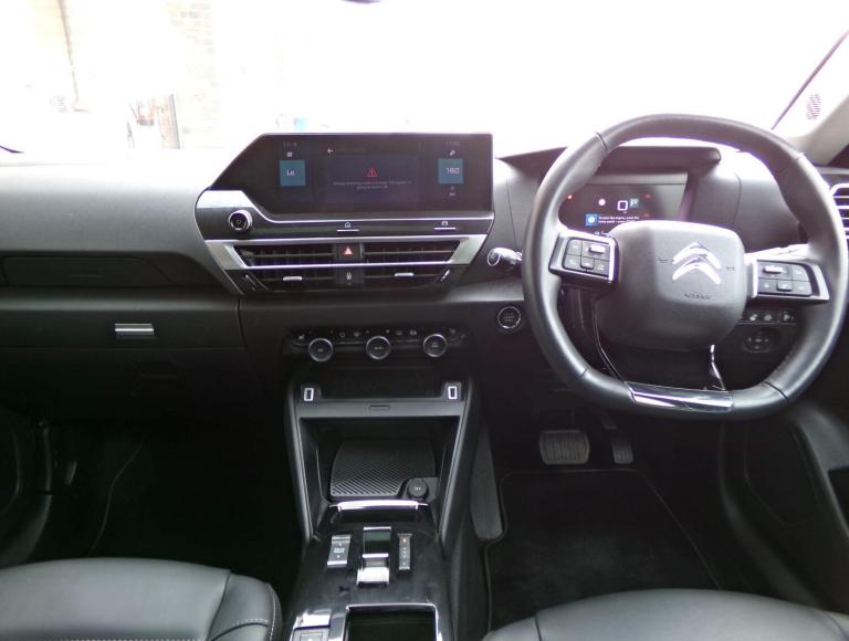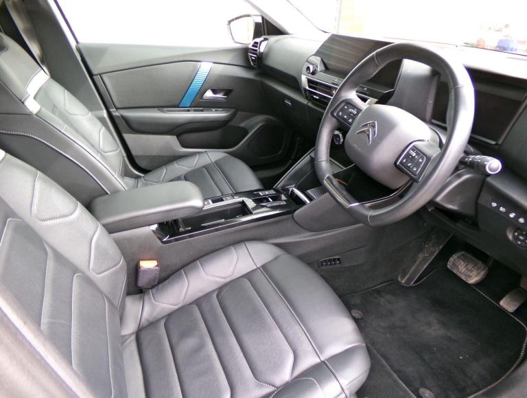 This 2023 Citroen e-C4 Shine Plus is a superb example, having had only one owner since new. As a fully electric vehicle, it offers a smooth and quiet driving experience, powered by a 50 kWh battery that provides a maximum range of 219 miles when new. Charging is convenient, with a full charge at home on a 7kW charger taking approximately 7 hours and 30 minutes, while rapid public charging can take you from empty to 80% in just 30 minutes.The Shine Plus trim level comes equipped with a host of desirable features designed to enhance your journey. Enjoy the comfort of a heated steering wheel and the convenience of a head up display, keeping essential information in your line of sight. Parking is made effortless with front, rear, and lateral parking aids, and keyless entry and start add to the modern feel. The My Citroen Drive Plus system integrates seamlessly with your smartphone, offering Android Auto and Apple CarPlay, alongside Bluetooth connectivity. Furthermore, this e-C4 boasts a large boot space, providing ample room for luggage or shopping, making it a practical choice for everyday use and longer trips.