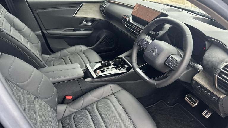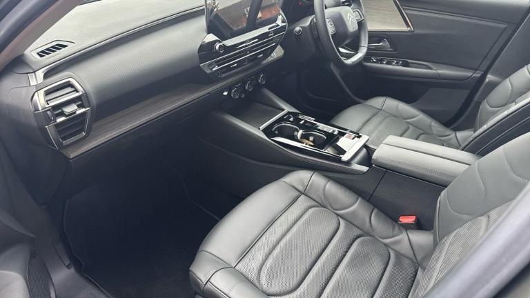 12in Central Touch Screen with Separate Heating and Ventilation controls12V Socket - Centre Console12V Socket - Luggage Compartment2 Front USB Plugs - 1 USB Type C Charge and Data in Front of Centre Console - 1 USB Type C Charging Only under Centre Front Armrest2 Rear USB Plugs - Charging OnlyCitroen Connect Box with Emergency and Assistance SystemHi Fi System - 8 LoudspeakersInductive Wireless Smartphone ChargingCoffee Break AlertDriver Information Panel with Lighting Fault Indicatore-Toggle Drive SelectorExtended Head Up Display - e-HUD - with Windscreen ProjectionFront and Rear Parking Sensors and 360-Degree Camera with Rear Camera Wash FunctionOutside Temperature IndicatorSensitivity Setting Selector Switch - Electric-Hybrid-Comfort-SportTyre Under Inflation Detection19in Alloy Wheels - Aero-X Diamond Cut with Onyx Black Paint and Onyx Black Aero InsertsAcoustic Insulated and Tinted Front and Extra Tinted Rear WindowsAcoustic Insulated and Tinted Windscreen with Head Up Display - eHUDBody Colour Exterior Door HandlesChrome Citroen Chevrons Integrated into Front Grille and Extending Outward into Front Light SignatureCompressor with Puncture Repair KitDoor Mirrors - Electronic - Heated - Folding with Integrated LED Indicator and LED Approach Lighting in Black - Extended Blind Spot Detection and Visiopark 360 DegreesExterior A-pillar Black TrimExtra Tinted - Heated Rear WindowExtra Tinted Rear Quarter Panel Windows with Animation in GlassFront Electric WindowsGloss Black Citroen Chevrons with Chrome Surround - Chrome Citroen Lettering and C5 X Badging on Rear TailgateGloss Black Door MirrorsHybrid Badging on Front Doors and FendersLED Front IndicatorsLocking Wheel NutsRear Electric WindowsRemote 4-Window Opening-Closing with PlipSatin Chrome Trim on Rear BumperAutomatic Illumination of Headlamps when UnlockingAutomatic Welcome and Follow Me Home LightingAutomatically Illuminating LED Headlamps with Automatic High Beam AssistFront LED Daytime Running LightsLED Fog Lights with Static Cornering Function Integrated into Front Bumper ApronLED Rear Lights - High Level LED Brake Light - LED Rear Number Plate Lighting7in Digital Instrument Cluster with Smoked Glass - 10 plus 2 Indicator Lights and Ambiance BacklightingAluminium Door Sill ProtectorsAutomatic Dual Zone Air ConditioningAutomatic Rain-Sensitive Flat Blade Wipers with Integrated Wash FunctionBlack Leather-Effect Central Armrest with OverstitchingBlack