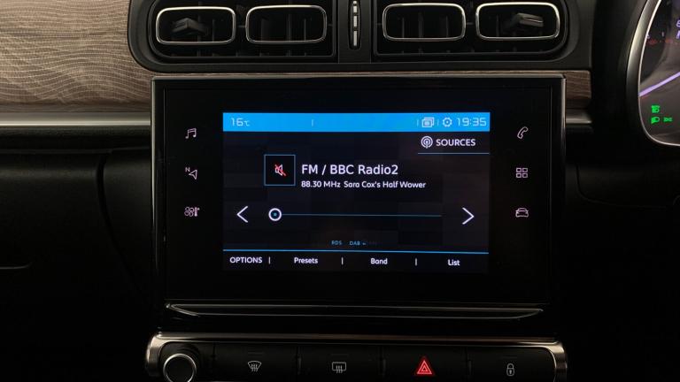 1 USB Connection12V SocketCitroen Connect Box with Emergency and Assistance SystemCitroen Connect NavCoffee Break AlertCruise Control with Speed LimiterLane Departure Warning SystemMulti-Function On-Board Trip ComputerRear Parking SensorsReversing CameraTyre Pressure Monitoring System17in Alloy Wheels - Vector - Diamond Cut3D Rear Lights SignatureAirbump on Side Door PanelBody Colour Door HandlesBody Colour Front and Rear BumpersChrome Decoration on Front Face - Under Chevrons and around Daytime Running LightsCitroen Illuminated Signature in LED Headlights and LED Daytime Running LightsDark Tinted - Rear Side and Tailgate WindowsElectrically Adjustable - Heated Folding Door MirrorsFront Sequential Electric Windows with One-Touch - Open-Close and Anti Pinch SystemGloss Black B PillarsPerla Nera Black Colour PackRear Sequential Electric Windows with One-Touch - Open-Close and Anti Pinch SystemRoof - Bi-Tone - Perla Nera BlackRoof-Colour Rear View Mirror CapsSpace Saver Spare WheelVisibility PackFog Lights Integrated into the Front BumperLED Daytime Running LightsLED Headlights2-3 - 1-3 Split Folding Rear BenchArmrest - Drivers CentralAuto-Dimming Electrochrome Rear View MirrorAutomatic Air ConditioningBoot LightDrivers and Passengers Sunvisor with Courtesy Mirror - Non IlluminatedFront Head Restraint with Height AdjustmentFront Lighting Panel with Map Reading LightsFront Seats Adjustable with Forward-Back Slide and Adjustable BackrestHeight Adjustable Drivers SeatHeight and Reach Adjustable Steering WheelInstrument Cluster with White LCD and Analogue Gauges - with Satin Chrome SurroundLeather Gear Lever with Leather-Effect Gaiter and OverstitchingLeather Steering Wheel with Gloss Black and Satin Chrome Elements and Audio-Telephone ControlsManual Parking Brake with Leather Handle and Chrome Finish ButtonMap Pockets in Back of Driver and Front Passenger SeatsParcel ShelfRear Windscreen Wiper with Intermittent Mode Linked to Vehicle Speed and Automatic Activation when Reverse Gear SelectedStorage Space Under Touchscreen with Rubber MatTechWood AmbienceThree Rear Seats with HeadrestsUpholstered Armrest in Front and Rear DoorsPower Assisted SteeringABS - Anti-Lock Braking SystemAirbags - DriverAnti-Theft AlarmAutomatic Activation of Hazard Warning Lights in Case of Severe DecelerationAutomatic Door and Boot Locking when in MotionCentral Locking with Locked Indicators and Interior One-Touch Lock