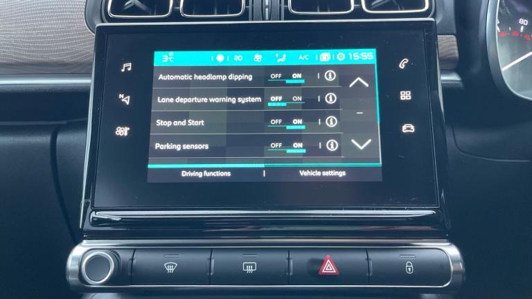 1 USB Connection12V SocketCitroen Connect Box with Emergency and Assistance SystemCitroen Connect NavCoffee Break AlertCruise Control with Speed LimiterLane Departure Warning SystemMulti-Function On-Board Trip ComputerRear Parking SensorsReversing CameraTyre Pressure Monitoring System17in Alloy Wheels - Vector - Diamond Cut3D Rear Lights SignatureAirbump on Side Door PanelBody Colour Door HandlesBody Colour Front and Rear BumpersChrome Decoration on Front Face - Under Chevrons and around Daytime Running LightsCitroen Illuminated Signature in LED Headlights and LED Daytime Running LightsDark Tinted - Rear Side and Tailgate WindowsElectrically Adjustable - Heated Folding Door MirrorsFront Sequential Electric Windows with One-Touch - Open-Close and Anti Pinch SystemGloss Black B PillarsPerla Nera Black Colour PackRear Sequential Electric Windows with One-Touch - Open-Close and Anti Pinch SystemRoof - Bi-Tone - Perla Nera BlackRoof-Colour Rear View Mirror CapsSpace Saver Spare WheelVisibility PackFog Lights Integrated into the Front BumperLED Daytime Running LightsLED Headlights2-3 - 1-3 Split Folding Rear BenchArmrest - Drivers CentralAuto-Dimming Electrochrome Rear View MirrorAutomatic Air ConditioningBoot LightDrivers and Passengers Sunvisor with Courtesy Mirror - Non IlluminatedFront Head Restraint with Height AdjustmentFront Lighting Panel with Map Reading LightsFront Seats Adjustable with Forward-Back Slide and Adjustable BackrestHeight Adjustable Drivers SeatHeight and Reach Adjustable Steering WheelInstrument Cluster with White LCD and Analogue Gauges - with Satin Chrome SurroundLeather Gear Lever with Leather-Effect Gaiter and OverstitchingLeather Steering Wheel with Gloss Black and Satin Chrome Elements and Audio-Telephone ControlsManual Parking Brake with Leather Handle and Chrome Finish ButtonMap Pockets in Back of Driver and Front Passenger SeatsParcel ShelfRear Windscreen Wiper with Intermittent Mode Linked to Vehicle Speed and Automatic Activation when Reverse Gear SelectedStorage Space Under Touchscreen with Rubber MatTechWood AmbienceThree Rear Seats with HeadrestsUpholstered Armrest in Front and Rear DoorsPower Assisted SteeringABS - Anti-Lock Braking SystemAirbags - DriverAnti-Theft AlarmAutomatic Activation of Hazard Warning Lights in Case of Severe DecelerationAutomatic Door and Boot Locking when in MotionCentral Locking with Locked Indicators and Interior One-Touch Lock