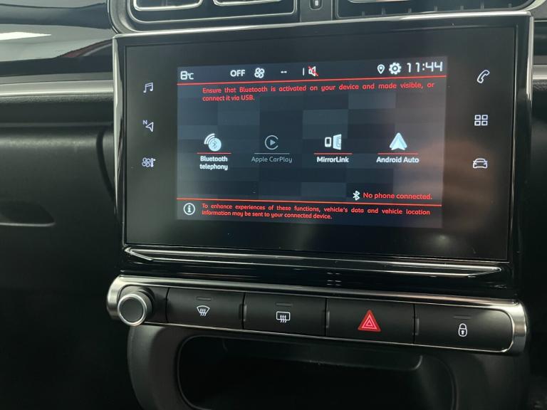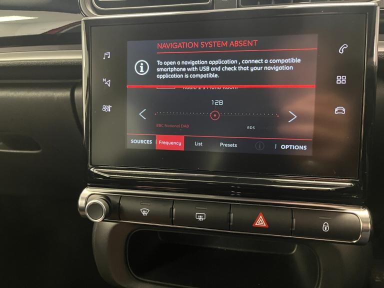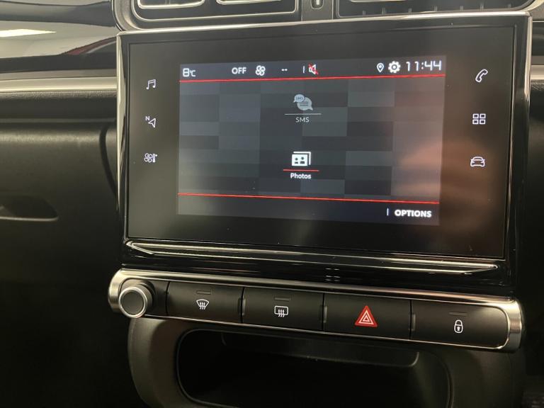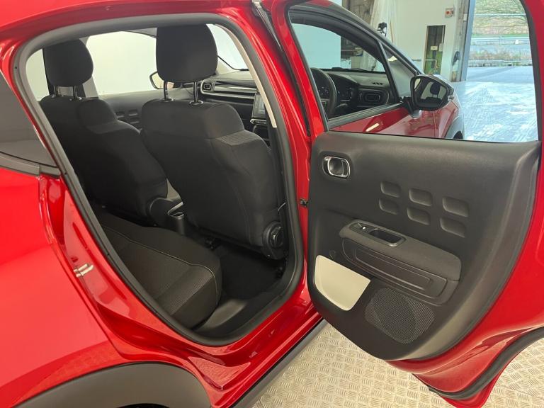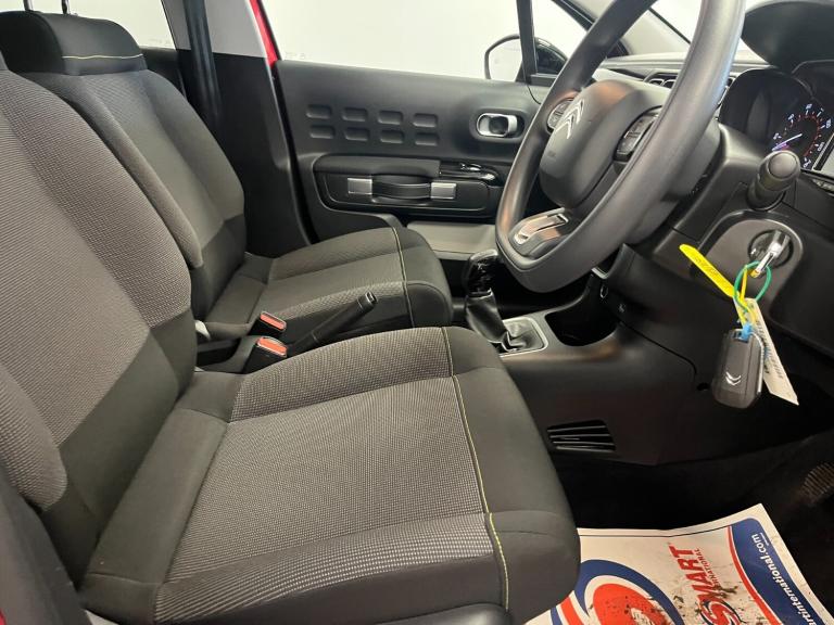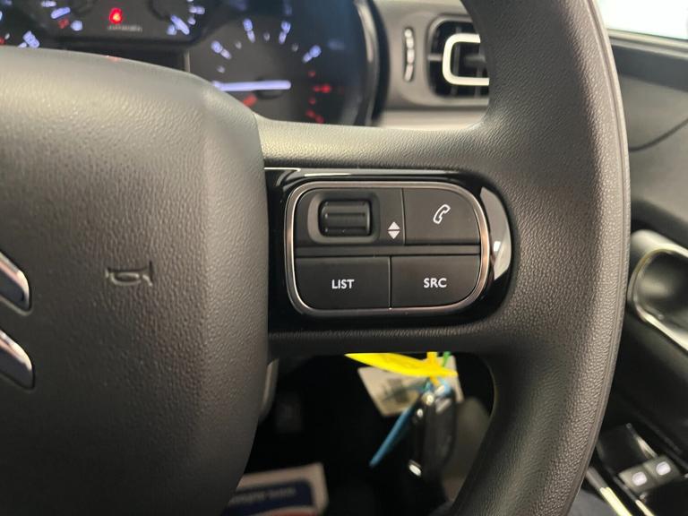 ..Coffee Break Alert, Cruise control + speed limiter, eCall emergency call system, Exterior temperature display, Instrument cluster with white LCD and analogue gauges, Lane departure warning system, Multi function trip computer, Rear parking sensors, Reversing camera, Variable assistance power steering, USB connection, 3D rear light signature, Airbump on side door panel, Automatic activation of hazard warning lights, Body colour bumpers, Body colour door handles, Chrome decoration on front face, under chevrons and around daytime running lights, Citroen illuminated signature in LED headlights and LED daytime running lights, Dark tinted tailgate and rear side windows, Electrically adjustable door mirrors, Electrically folding door mirrors, Fog lights integrated into front bumper, Front sequential electric windows with one-touch open/close and anti-pinch system, Heated door mirrors, LED Headlights, LED third brake light, Matt black finish B pillar, Rear sequential electric windows with one-touch open/close and anti-pinch system, Rear side wing doors, Rear windscreen wiper with intermittent mode linked to vehicle speed and automatic activation when reverse gear selected, Roof colour rear view mirror caps, Standard day night switchable interior rear view mirror, 1/3 to 2/3 split folding rear seat, 12V socket, Automatic air conditioning, Boot light, Cloth upholstery, Driver and passenger's sun visor with courtesy mirror, Driver's seat height adjustment, Front lighting panel with map reading lights, Front seats adjustable with forward back slide and adjustable backrest, Height adjustable front head restraints, Height/reach adjust steering wheel, ISOFIX mounting on outer rear seats with top tether and labels indicating fixing points, Parcel shelf, Row 2 - Three seats with individually adjustable head rests, Seatbelt unfastened on the move audible and visual alert for front and rear seats, Single front passenger seat, Soft touch gear lever with leather effect gaiter and overstitching, Standard ambience, Steering wheel with satin chrome elements and audio/telephone controls, Three rear headrests, Upholstered armrest in front and rear doors, Safety pack 1 - C3, Visibility pack with automatic lights - C3, ABS with Electronic brakeforce distribution and Emergency braking assistance, Driver and front passenger seatbelts with pyrotechnic pretensioners and force limiters, Driver's airbag, Electric child locks, ESP with anti skid system, Front passenger airbag, Front
