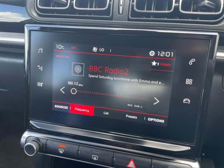 [DriverConvenience]Upholstered armrest in front and rear doors Coffee Break Alert, Cruise control + speed limiter, eCall emergency call system, Exterior temperature display, Instrument cluster with white LCD and analogue gauges, Lane departure warning system, Multi function trip computer, Rear parking sensors, Reversing camera, 3D rear light signature, Airbump on side door panel, Automatic activation of hazard warning lights, Body colour bumpers, Body colour door handles, Chrome decoration on front face, under chevrons and around daytime running lights, Citroen illuminated signature in LED headlights and LED daytime running lights, Dark tinted tailgate and rear side windows, Electrically adjustable door mirrors, Electrically folding door mirrors, Fog lights integrated into front bumper, Front sequential electric windows with one-touch open/close and anti-pinch system, Heated door mirrors, LED Headlights, LED third brake light, Matt black finish B pillar, Rear sequential electric windows with one-touch open/close and anti-pinch system, Rear side wing doors, Rear windscreen wiper with intermittent mode linked to vehicle speed and automatic activation when reverse gear selected, Roof colour rear view mirror caps, Standard day night switchable interior rear view mirror 1/3 to 2/3 split folding rear seat, 12V socket, Automatic air conditioning, Boot light, Cloth upholstery, Driver and passenger's sun visor with courtesy mirror, Driver's seat height adjustment, Front lighting panel
