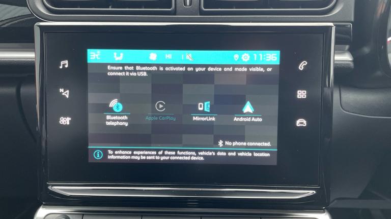 1 USB Connection12V SocketCitroen Connect DAB Radio with 6 SpeakersCoffee Break AlertCruise Control with Speed LimiterLane Departure Warning SystemMulti-Function On-Board Trip ComputerRear Parking SensorsReversing CameraTyre Pressure Monitoring System16in Alloy Wheels - Matrix - Bi-tone3D Rear Lights SignatureAirbump on Side Door PanelBody Colour Door HandlesBody Colour Front and Rear BumpersChrome Decoration on Front Face - Under Chevrons and around Daytime Running LightsCitroen Illuminated Signature in LED Headlights and LED Daytime Running LightsDark Tinted - Rear Side and Tailgate WindowsElectrically Adjustable - Heated Folding Door MirrorsFront Sequential Electric Windows with One-Touch - Open-Close and Anti Pinch SystemGlossy Black Colour PackMatt Black B PillarsPuncture Repair KitRear Sequential Electric Windows with One-Touch - Open-Close and Anti Pinch SystemRoof - Bi-Tone - Perla Nera BlackRoof-Colour Rear View Mirror CapsVisibility PackFog Lights Integrated into the Front BumperLED Daytime Running LightsLED Headlights2-3 - 1-3 Split Folding Rear BenchAutomatic Air ConditioningBoot LightDay-Night Switchable Interior Rear View MirrorDrivers and Passengers Sunvisor with Courtesy Mirror - Non IlluminatedFront Head Restraint with Height AdjustmentFront Lighting Panel with Map Reading LightsFront Seats Adjustable with Forward-Back Slide and Adjustable BackrestGloss Black Dashboard with Grey SurroundHeight Adjustable Drivers SeatHeight and Reach Adjustable Steering WheelInstrument Cluster with White LCD and Analogue GaugesManual Parking Brake with Chrome Finish ButtonParcel ShelfRear Windscreen Wiper with Intermittent Mode Linked to Vehicle Speed and Automatic Activation when Reverse Gear SelectedSoft-Touch Gear Lever with Leather-Effect Gaiter and OverstitchingSteering Wheel with Satin Chrome Elements and Audio-Telephone ControlsThree Rear Seats with HeadrestsUpholstered Armrest in Front and Rear DoorsPower Assisted SteeringABS - Anti-Lock Braking SystemAirbags - DriverAnti-Theft AlarmAutomatic Activation of Hazard Warning Lights in Case of Severe DecelerationAutomatic Door and Boot Locking when in MotionCentral Locking with Locked Indicators and Interior One-Touch Lock ButtonDriver and Front Seatbelts with Pyrotechnic Pretensioners and Force LimitersElectric Child LocksESP - Electronic Stability Programme with Anti-Skid SystemFront Passenger Airbag - Can be DeactivatedFront Side Airbags and