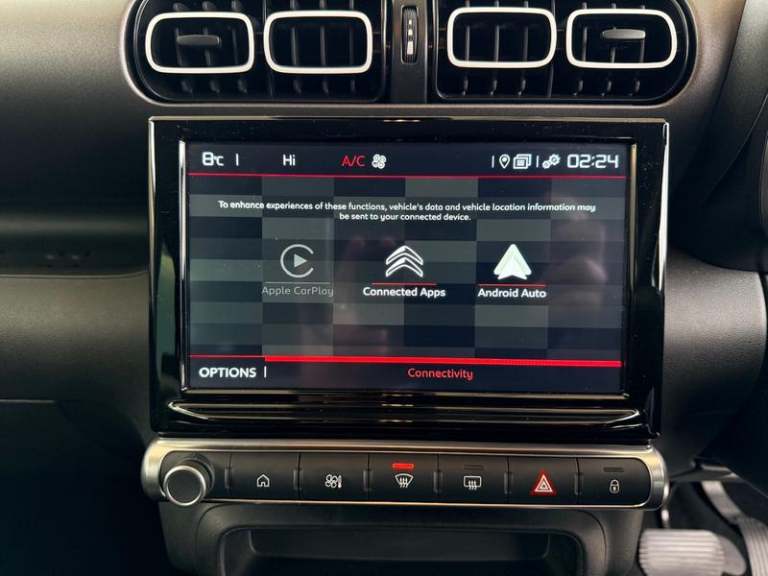 12V Socket - Front, Citroen Connect Box with Emergency and Assistance System, Citroen Connected Nav with 3D Navigation, Coffee Break Alert, Cruise Control with Speed Limiter, Lane Departure Warning System, Outside Temperature Indicator, Rear Parking Sensors, Traffic Sign and Speed Limit Recognition and Recommendation, Tyre Pressure Monitor, 16in Alloy Wheels - X Cross - Diamond Cut, 3D Effect Rear Lights, Black Roof Bars, Body Colour Painted Door Handles, Chrome Chevrons Citroen Front Grille, Compressor with Puncture Repair Kit, Door Mirrors - Electrically Adjustable-Heated-Folding, Front Electric Windows - One Touch with Anti-Pinch, Gloss Black Colour Pack, Integrated Roof Spoiler, Rear Electric Windows - One Touch with Anti-Pinch, Tinted Rear Windows and Rear Quarterpanel Glass, Automatic Lights and Windscreen Wipers, LED Daytime Running Lights, LED Headlights - ECO, Vehicle Locater Function, Automatic Air Conditioning, Boot Light, Centre Console - Open Storage, Courtesy Reading Lights - Front and Rear, Driver Instrument Cluster - White Text LCD Display and White Needles and Chrome Decor, Driver and Front Passenger Cup Holders, Drivers and Passengers Sunvisor with Courtesy Mirror, Flex Load - Pull Out Boot Floor, Front and Rear Door Storage, Glovebox - Closeable Lid, Height Adjustable Drivers Seat, Height and Reach Adjustable Steering Wheel, Leather Steering Wheel with Satin Chrome Inserts and Radio Controls, Manual Handbrake with Chrome Insert, Passenger Compartment Headlight
