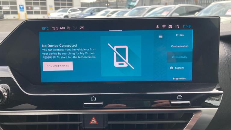.Rear wiper, Front and rear electric windows, Dark tinted rear windows and side windows with chrome detail, Rain sensing automatic front windscreen wipers, ABS, ESP, Hill start assist, Electric parking brake, Electronic Power Steering (EPS), Advanced comfort suspension - double hydraulic stops on front and rear suspension, Apple car play and Android auto, Voice commands, Speed limiter, Active blind spot detection, In-crash braking, Citroen Smart Pad Support - integrated support for attaching a tablet computer for front passenger, Citroen connect box emergency and assistance system, Front, rear and lateral parking sensors, Keyless entry and start, Driver's head-up display, 5.5 inch backlit full TFT driver's instrument cluster with LED ambient lighting, My Citroen Drive Plus: 10"" high-resolution touchscreen user interface, controlling media, connectivity, vehicle settings + connected nav, Electrically heated