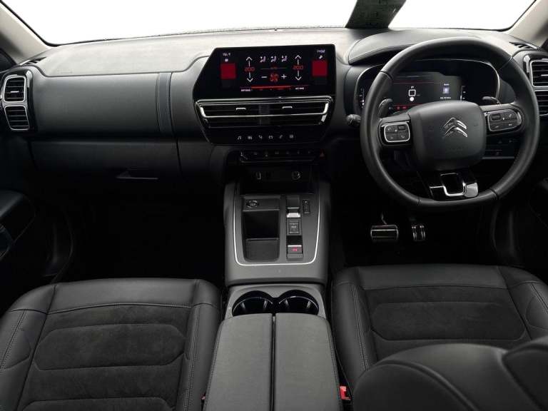 ..10'' Touchscreen user interface with citroen connect nav, voice commands, Bluetooth handsfree and audio streaming, 12.3'' digital instrument cluster with customisable zones and colour schemes, Citroen connect box emergency assist system, Citroen connect play featuring android auto and apple carPlay, Electric power steering, Multi function trip computer, Advanced comfort suspension, Auxiliary input socket, FM and DAB digital radio, 6 speakers, Polyphonic sounds, USB A socket (charge only) on rear part of central console, 3rd brake light, Acoustic laminated windscreen with rain and brightness sensors, Automatic hazard light activation upon heavy brake application, Automatic headlights with welcome and goodbye lighting, Body colour door handles, Body colour front bumper with air curtain, silver painted skid plate, and matt black lower section, Body colour rear bumper, Electric heated and folding door mirrors with LED approach lighting and blind spot monitoring indicators, Electrochrome auto dimming interior rear view mirror, Front fog lights with static cornering function, Gloss black longitudinal roof bars, Glossy black door mirrors, Glossy black structured grille, LED headlights with LED daytime running lights and visual signature, LED rear lights with visual signature, Magic wash automatic windscreen wipers with flat blades, variable speed depending on vehicle speed, and windscreen washers integrated into the wipers, Radio aerial integrated into rear window, Rear side wing doors, Rear window wiper with intermittent facility, linked to reverse gear, Sequential electric front and rear side windows with anti pinch function, Stainless steel front door thresholds, Stainless steel window finishers, Tinted row 1 windows and dark tinted row 2, C-Pillar and tailgate windows, 12V power outlet and 2x USB-A sockets (1x charge+data, 1x charge only) on front part of central console, 12V socket in boot, 2 Position boot floor, 3 point ISOFIX mountings on front passenger and rear outer seats, 4 way adjustable steering column, 6-way electric adjust driver seat, Adjustable headrests (2 in front, 3 in rear), Advanced comfort front and rear seats, Aluminium pedals and foot rest, Automatic bi-zone air conditioning with active carbon filter and air quality system, plus controllable row 2 air diffuser, Boot light, Central storage box with opening central armrest and interior lighting, Dashboard storage area to right of driver,open storage at front of central console,glovebox