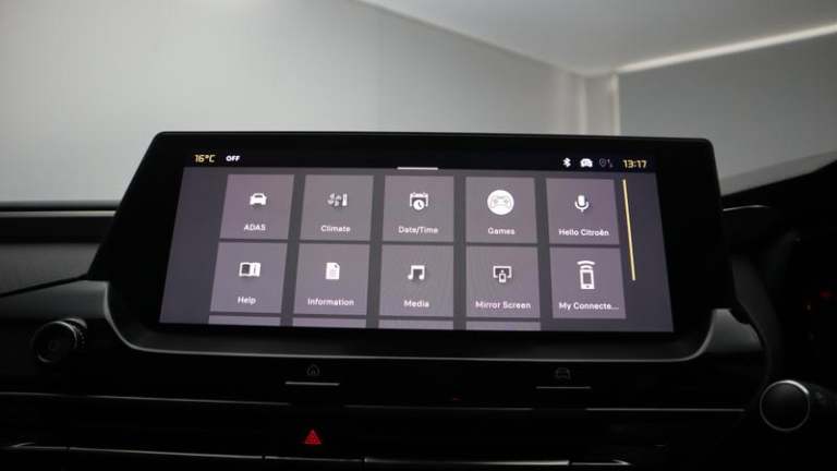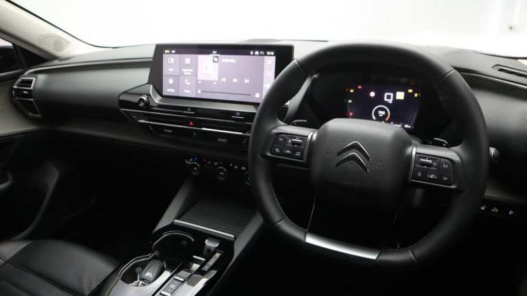 12V Socket in Front Console, 12in Central Touch Screen with Separate Heating and Ventilation Controls - with Driver Assistance and Home Buttons, 2 Front USB Plugs - 1 USB Type C Charge and Data in Front of Centre Console - 1 USB Type C Charging Only under Centre Front Armrest, 2 Rear USB Plugs - Charging Only, Citroen Connect Box with Emergency and Assistance System, Connect PLUS Service (1 Year Subscription From New), Hi Fi System - 8 Loudspeakers - 2 Front Woofers - 2 Front Tweeters - 2 Rear Woofers and 2 Rear Tweeters, Inductive Wireless Smartphone Charging, Remote Functions - Horn and Lighting - Lock-Unlock Doors - Vehicle Status, Coffee Break Alert, Driver Information Panel with Lighting Fault Indicator, Extended Head Up Display - e-HUD - with Windscreen Projection, Front and Rear Parking Sensors and 360-Degree Camera with Rear Camera Wash Function, Outside Temperature Indicator, Tyre Under Inflation Detection, e-Toggle Automatic Gearbox Selector Switch on Centre Console, 19in Alloy Wheels - Aero-X Diamond Cut with Onyx Black Paint and Onyx Black Aero Inserts, Acoustic Insulated and Tinted Front and Extra Tinted Rear Windows, Acoustic Insulated and Tinted Windscreen with Head Up Display - eHUD, Body Colour Exterior Door Handles, Chrome Citroen Chevrons Integrated into Front Grille and Extending Outward into Front Light Signature, Door Mirrors - Electronic - Heated - Folding with Integrated LED Indicator and LED Approach Lighting in Black - Extended Blind Spot Detection and